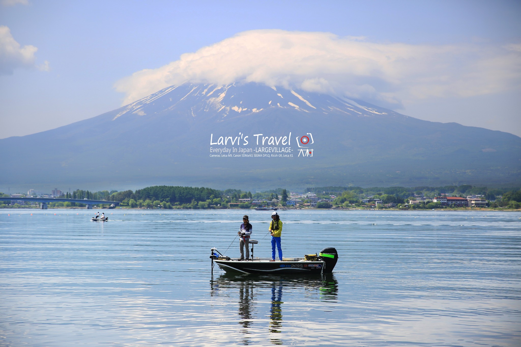 湖上漂来一搜小船,有位在河口湖上钓鱼的朋友慢慢漂浮着