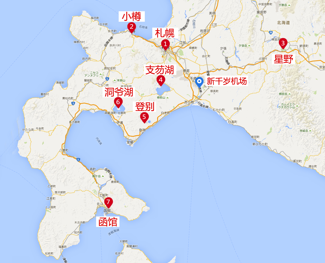 整个行程的安排:从上海飞北海道札幌,北海道游玩7天后,经函馆飞到东京,