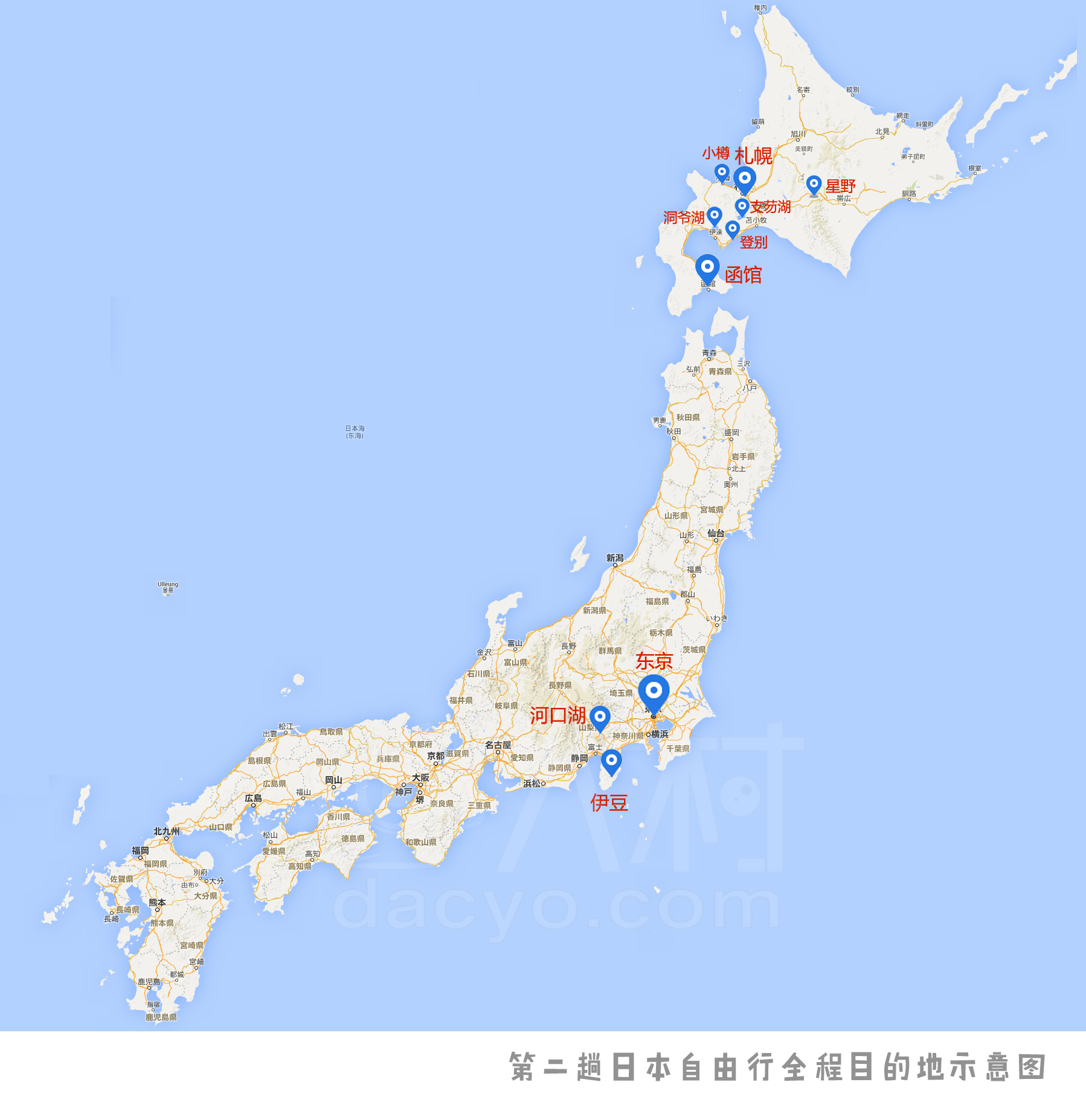 全程北海道、东京、河口湖、伊豆日本共15天+香港1天=16天。