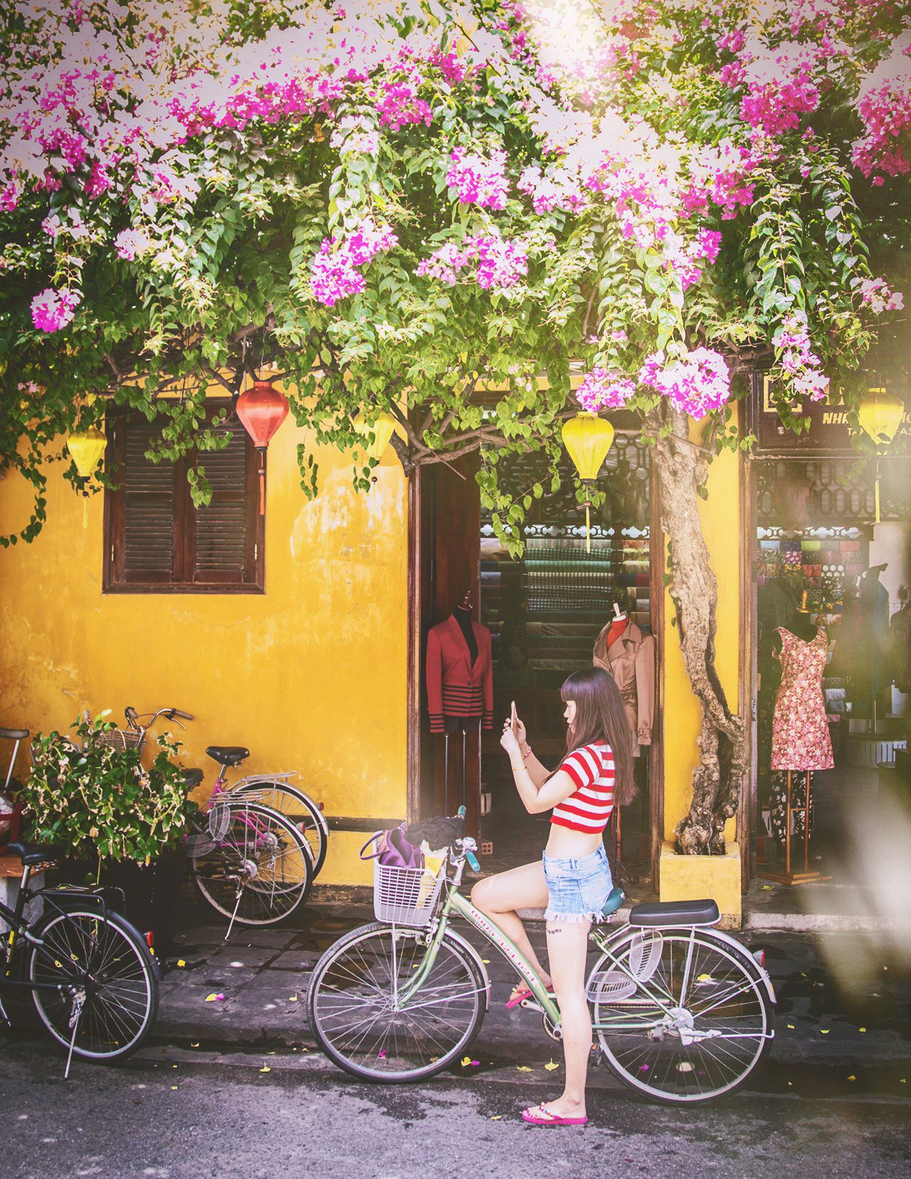 来过这里的友人说过:“小小的一座会安古城,既拥有中国的古朴典雅、日本的端庄自然、越南的明朗活泼又融合了法国的浪漫迷人,来了必定让你流连忘返。”我更想说,这里更适合爱好摄影的你。明快的柠檬黄主色调,点缀玫红色盛开的三角梅,偶有身着奥黛的窈窕少女,以及挑着担子在河边兜售物品的淳朴当地人,每一处都是能出片的极好景致。