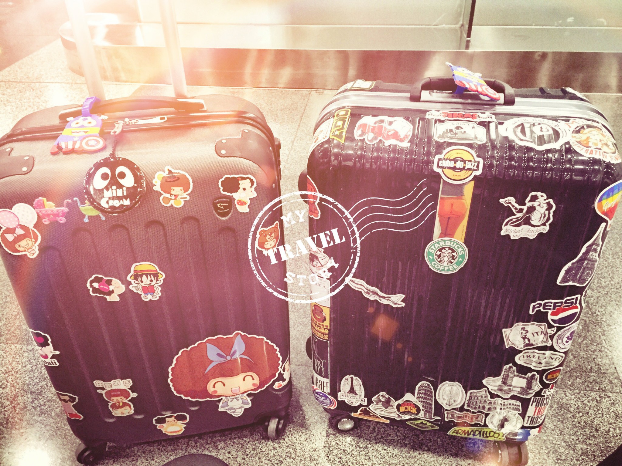 某心机男把自己的箱子(右)整的挺好看,把我的箱子(左)贴的巨幼稚无比。