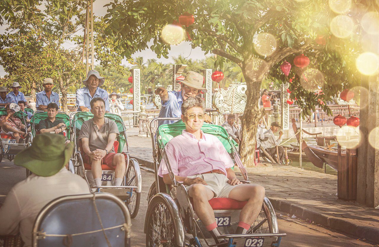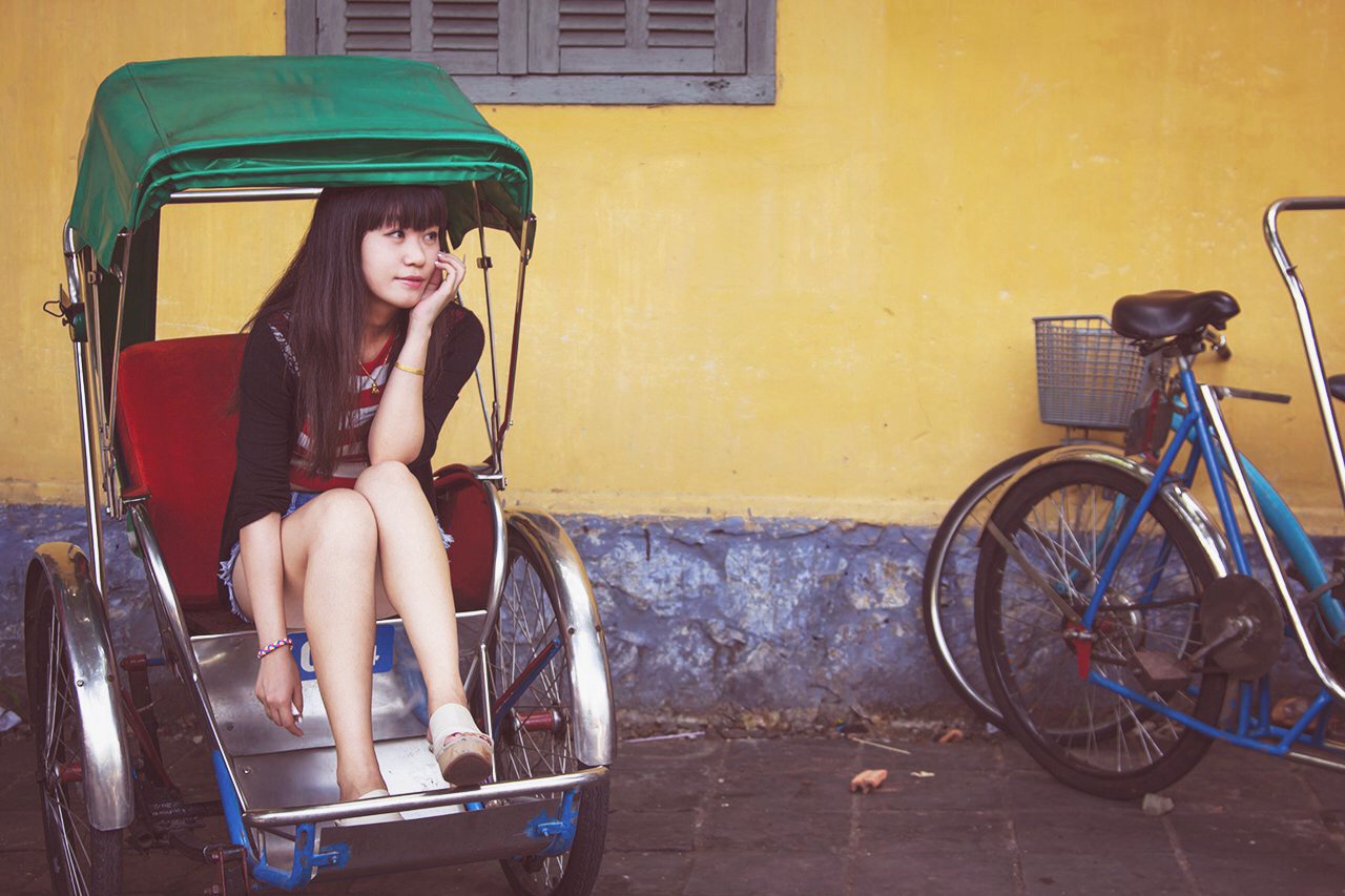 会安特色“客先死”,所谓客先死,即客人的位置在前头,越南车夫在后头坐得老高,慢悠悠地踩着在小城中行进游览的特色项目。