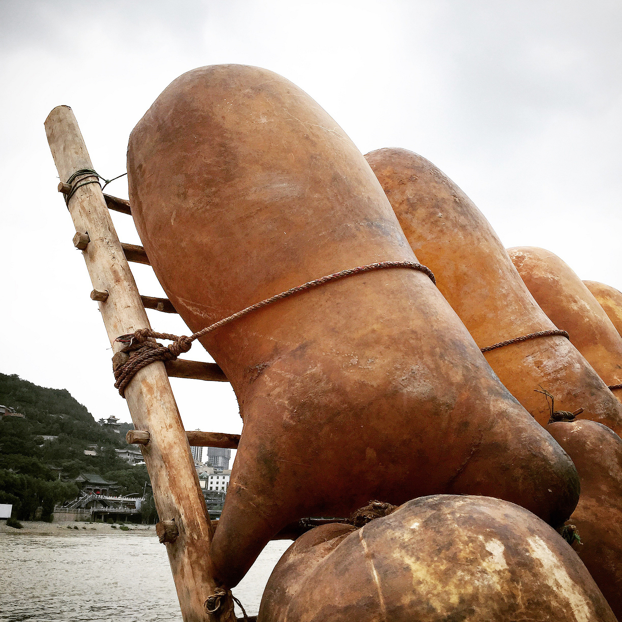黄河边的羊皮筏。走过去戳了一下,有点儿像胶皮管子的手感,还挺好玩儿哒~~~