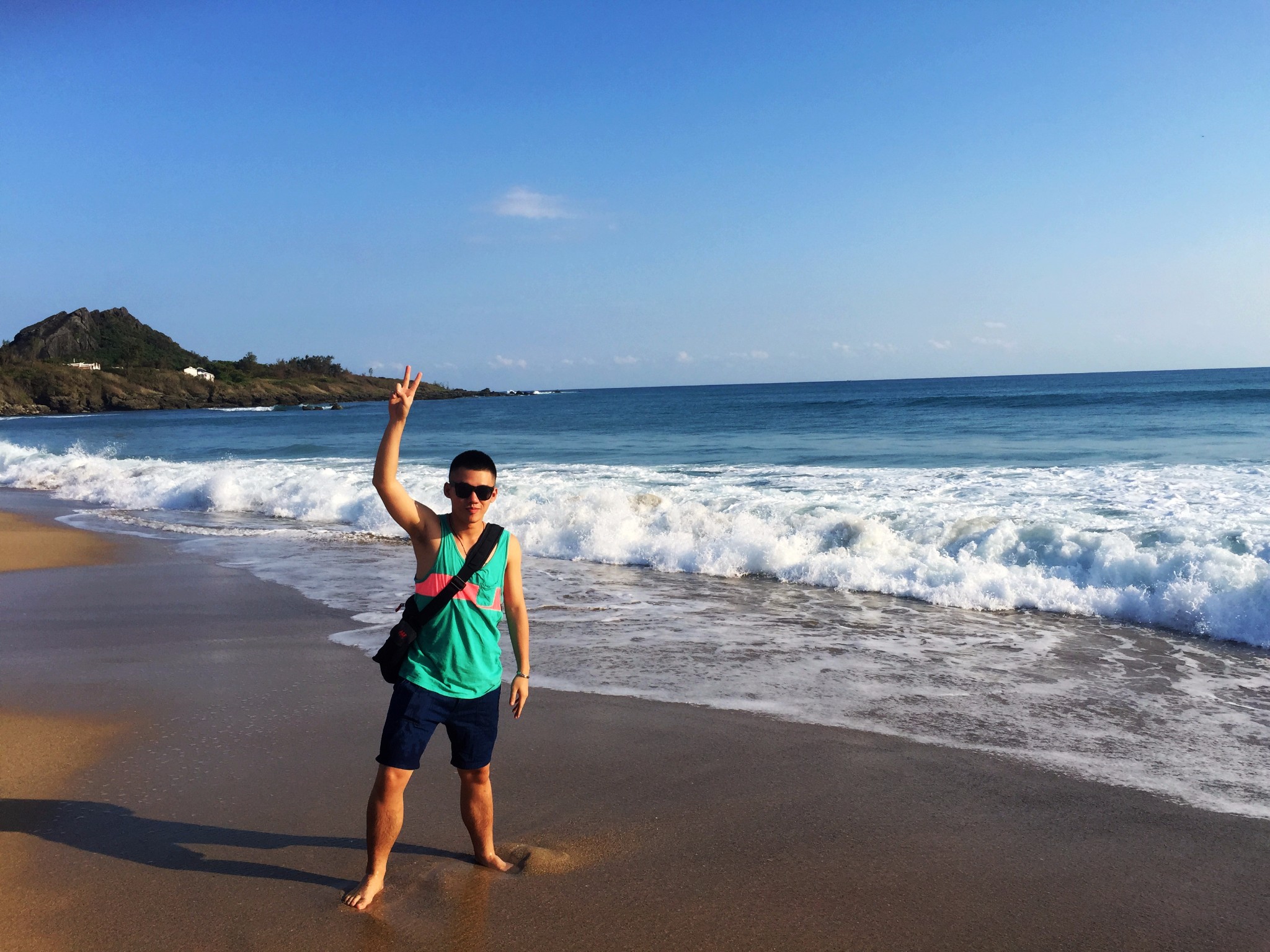 本来不打算和大海合照的我,拜托同事给我拍了一张。我觉得垦丁的海很棒。
