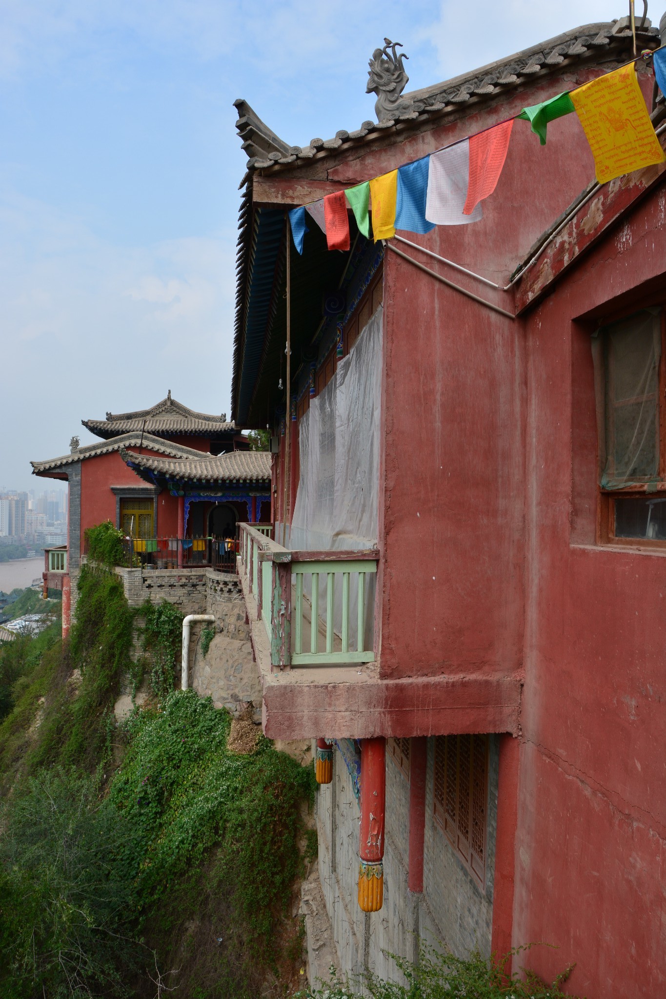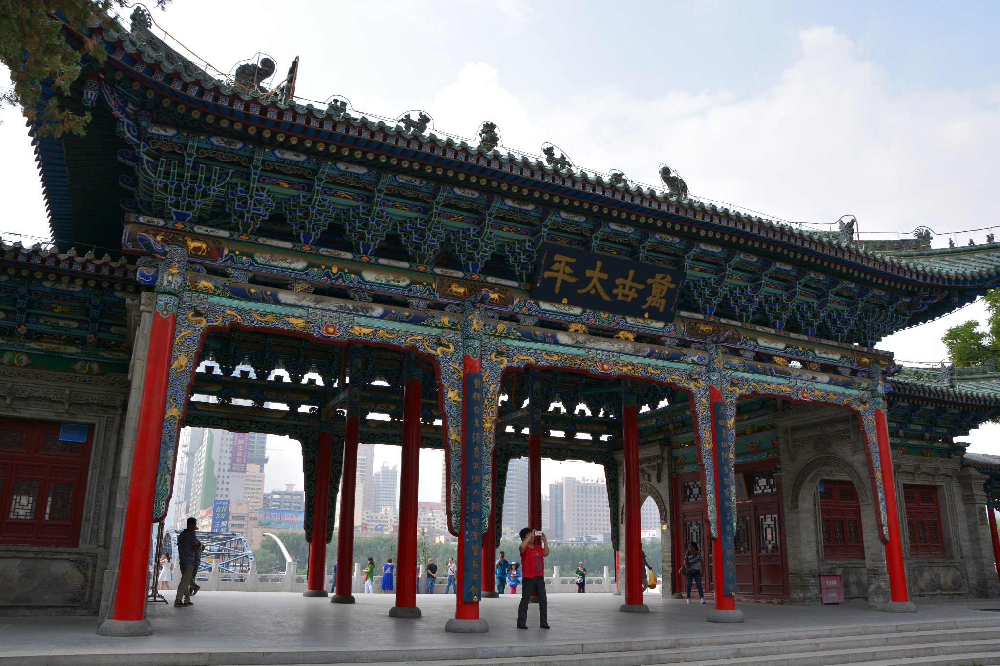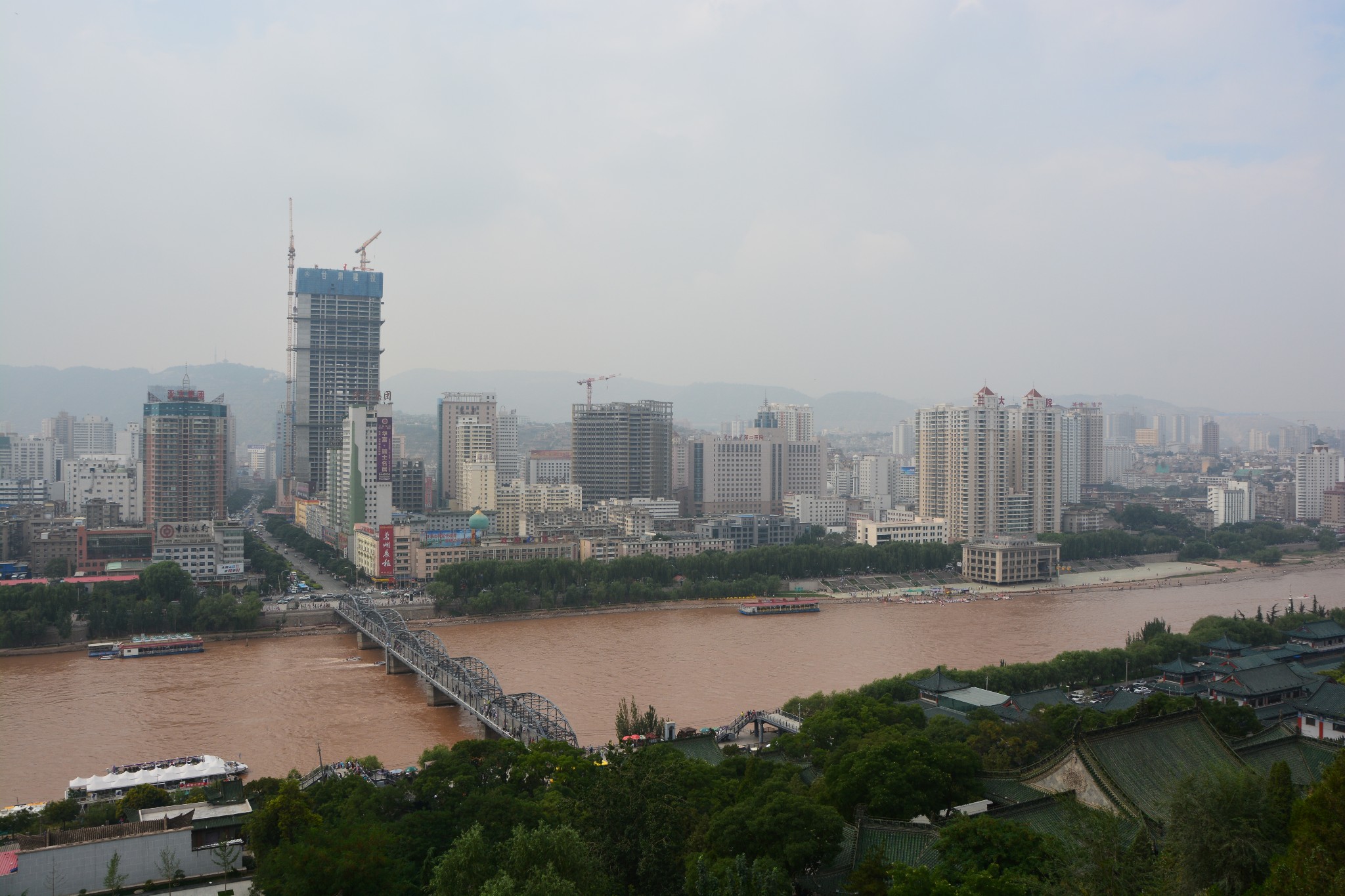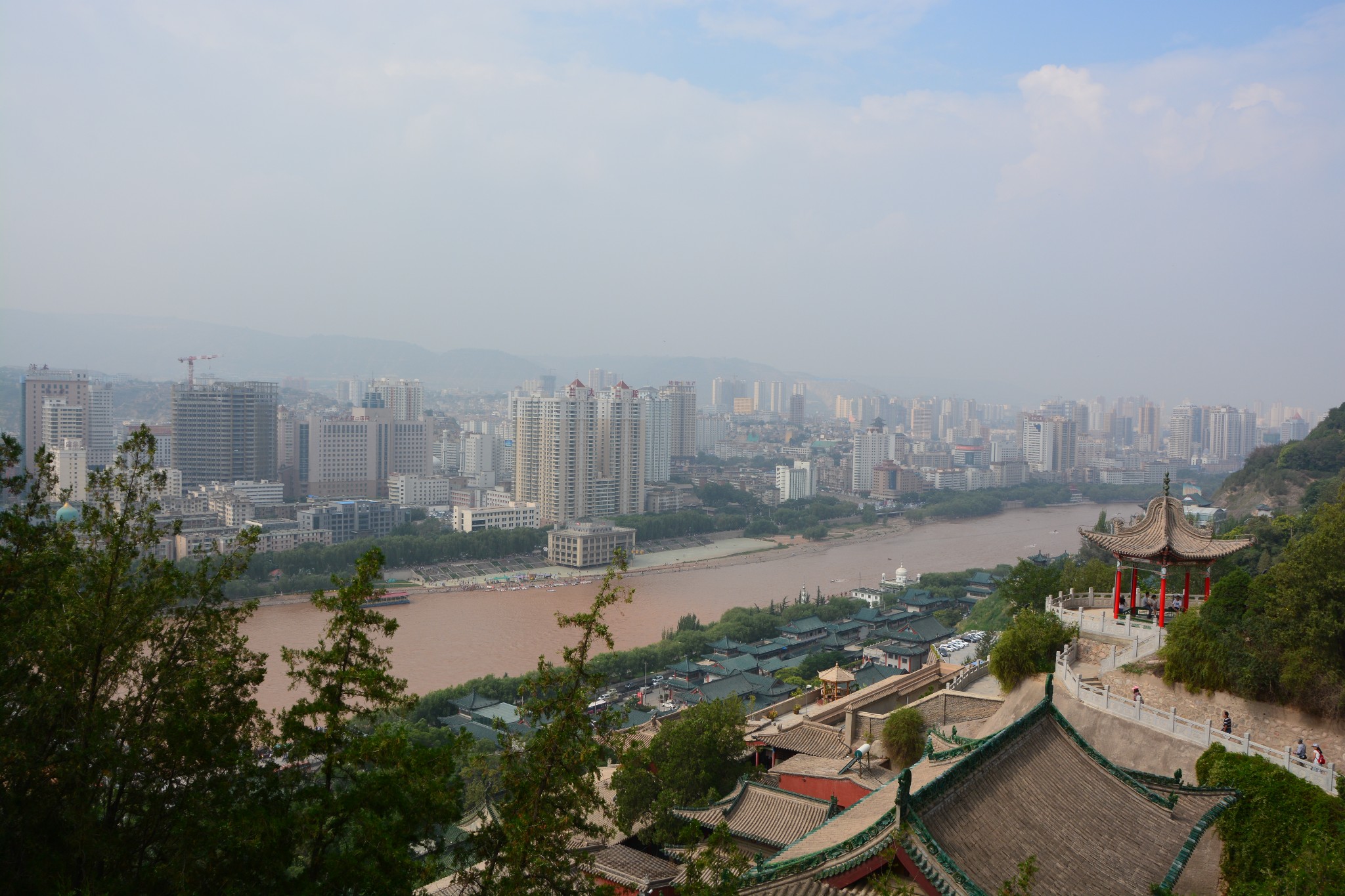 登上宝塔山顶,可以俯瞰黄河两岸的兰州市容,浑浊的河水静静流淌,铁灰色的中山桥如同一根坚实的臂膀,默默搭在河上,一派雄浑壮丽的景象。可以负责任地说,从此处望出去,应该就是整座兰州城内最好的景色了。