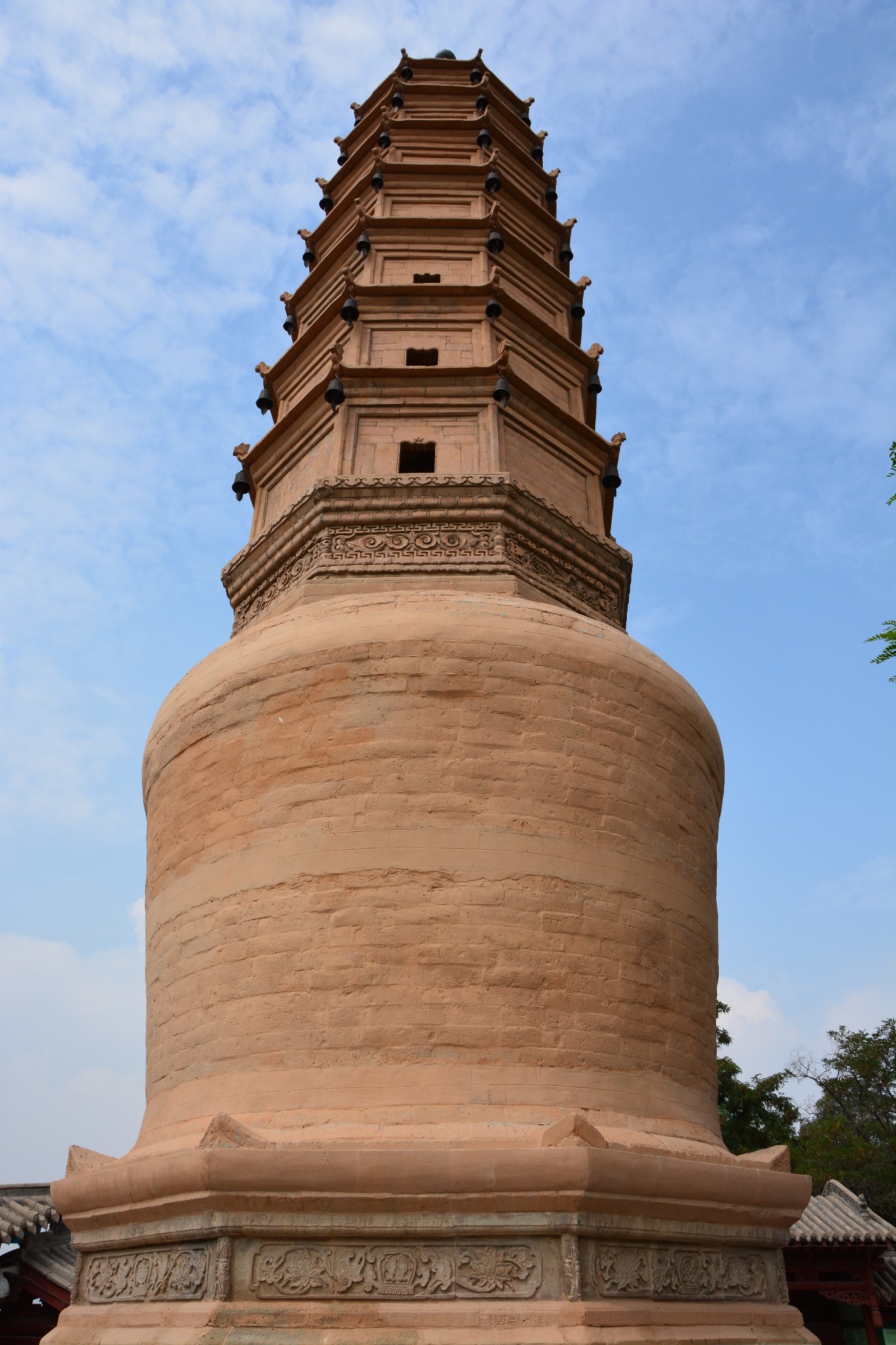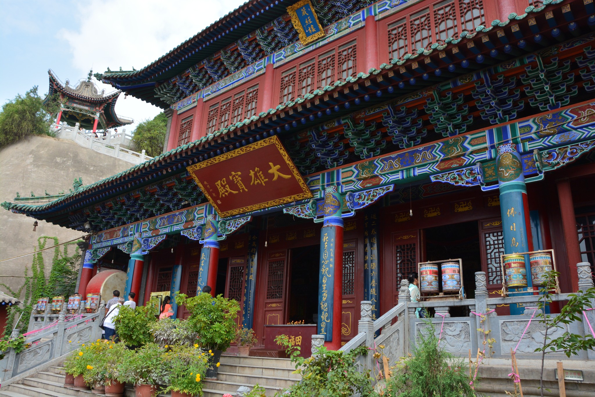 过了中山桥,便可以到达兰州城的另一处地标”白塔山公园“。白塔山由于山头一座白塔寺而得名,这座寺院始建于元朝,重修于明代。寺院平面呈长方形,大名鼎鼎的白塔居中矗立。说是”白塔“,看介绍也说此塔”通体洁白,挺拔秀丽“,可实际上该塔却是砖石结构,呈土黄色。白塔下部为喇嘛教的圆基结构,上部却是汉族的塔式结构,是一座典型的民族融合型宝塔。