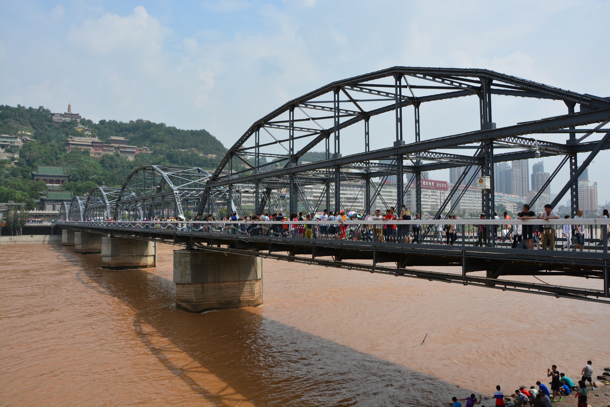 中山桥是最早建成的横跨黄河的桥梁,始建于清光绪三十三年,最初名为“兰州黄河铁桥”,后来才改称“中山桥”。全部建桥材料都于1907年从德国走海运到天津,再由甘肃洋务总局从天津转运至兰州。建桥的工程师是美国人满宝本和德国人德罗,施工负责人为天津人刘永起。施工人员以德商聘来的69名洋工华匠为主,历时3年建成,造价白银三十万六千余两。迄今为止,中山桥已在黄河上屹立超过一个世纪,仍然牢固如新。