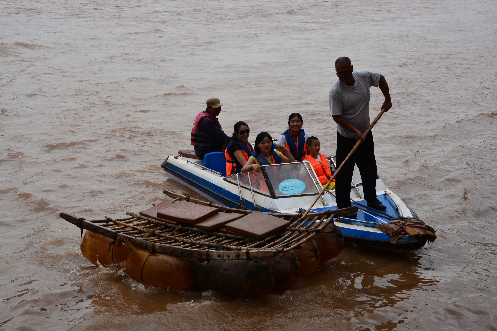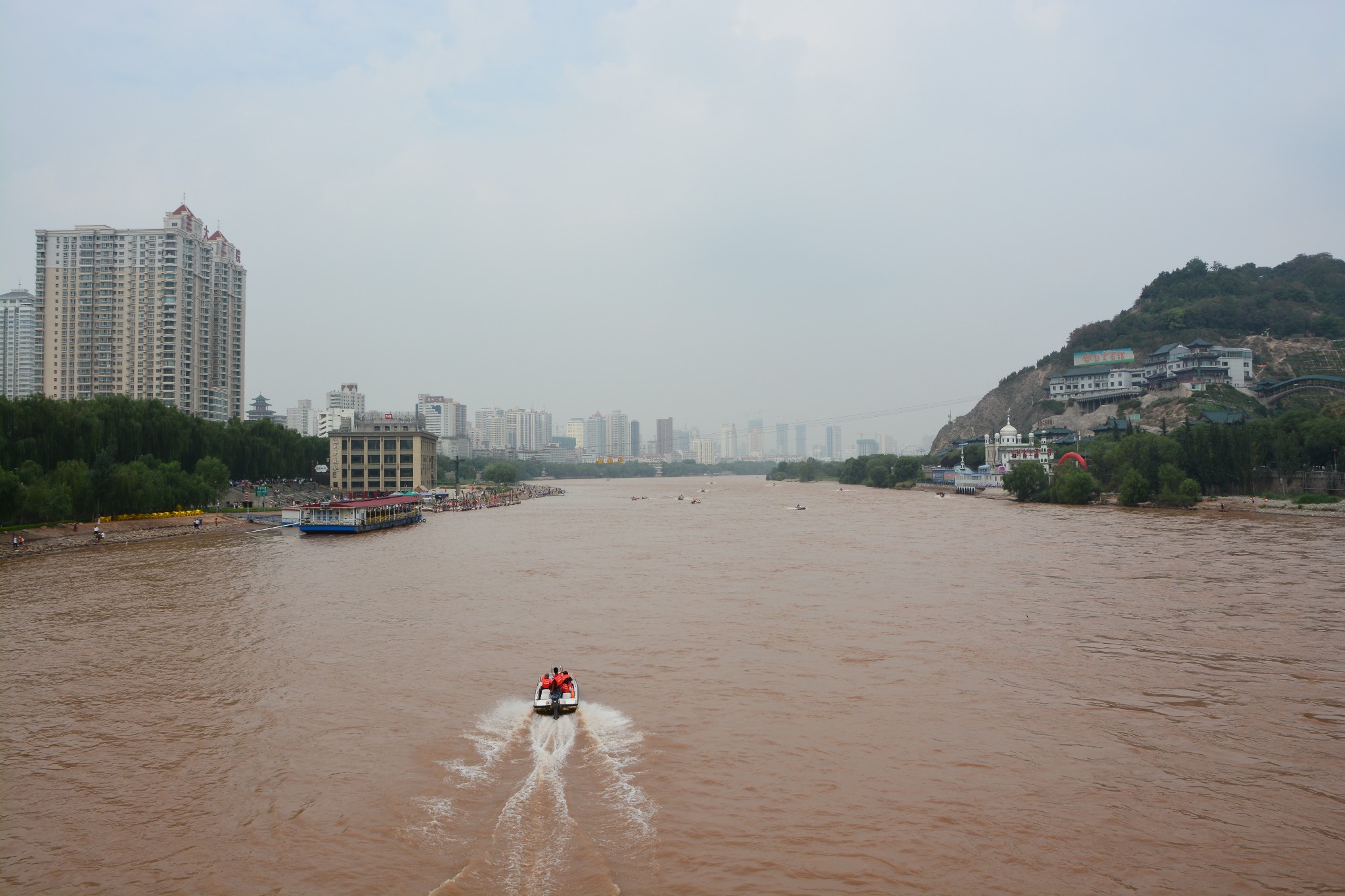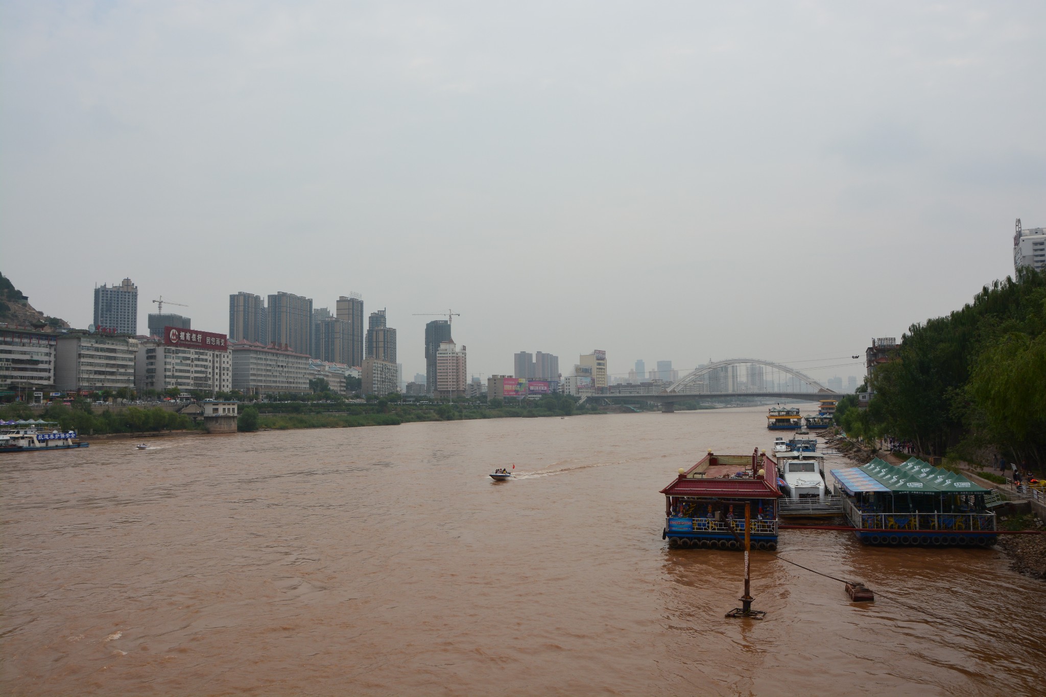 黄河上漂来一只羊皮筏子,还未停稳,等待已久的游客们便蜂拥而上,争相体验这种黄河沿岸古老的摆渡工具,由于我前段时间才在沙坡头坐过羊皮筏子,听过艄公的小曲,这次在兰州便只是站在岸边,饶有兴趣地看着筏子随着水流的方向颤颤巍巍飘远,心思也随着筏子渐渐远去了。