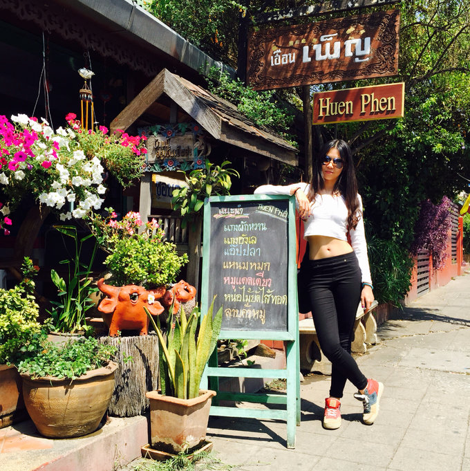 中午去了攻略很多有介绍的,而且同学又推荐的Huen Phen 吃泰北菜的,价格是超级便宜。Google map可以搜到这个餐厅,在古城内契迪龙寺后面。