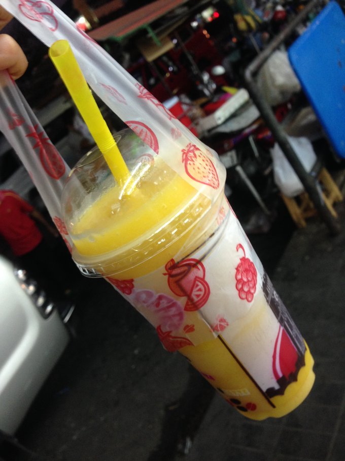 (真是百喝不腻,一天几杯都没问题,我们通常都会喝no sugar原汁原味的。清迈喝得fruit shake我觉得是我们去这几个地方最好喝的,因为在pai和曼谷都喝到奇怪的shake。