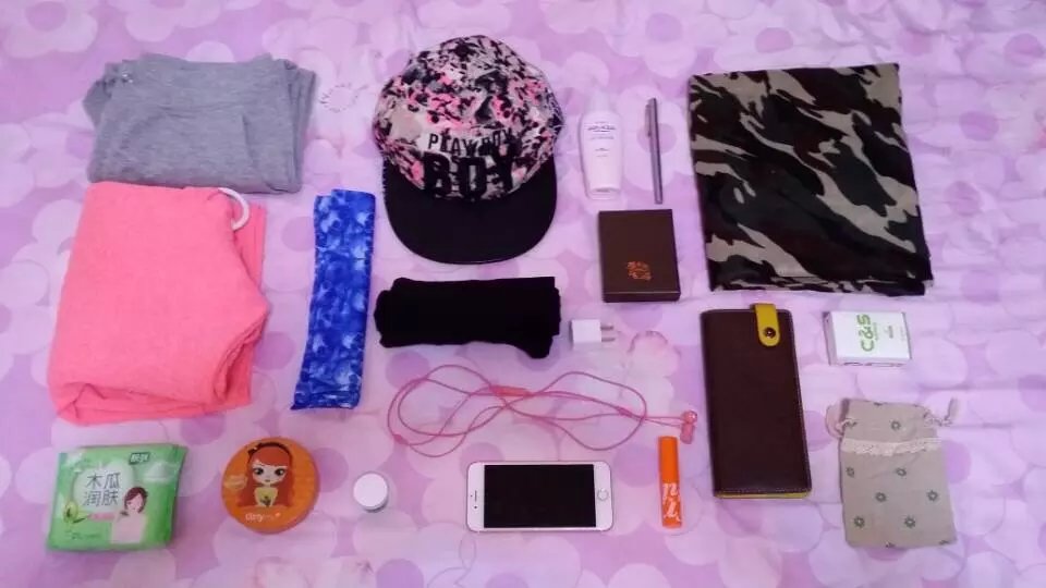 行前准备,最后耳机没有用到,魔术头巾没有用到,唇膏就擦了一次,防晒霜也只擦了一次,橘色小盒子里面装的药,虽然也没用到不过这是我的小习惯,之前一个人去西安然后生病了凌晨被痛醒到处找医院的感觉真的是。。。。