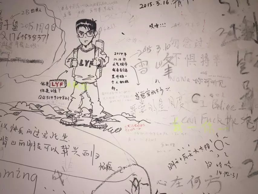 晚上十一点左右抵达邓军长家,墙上全是来过的人们的涂鸦