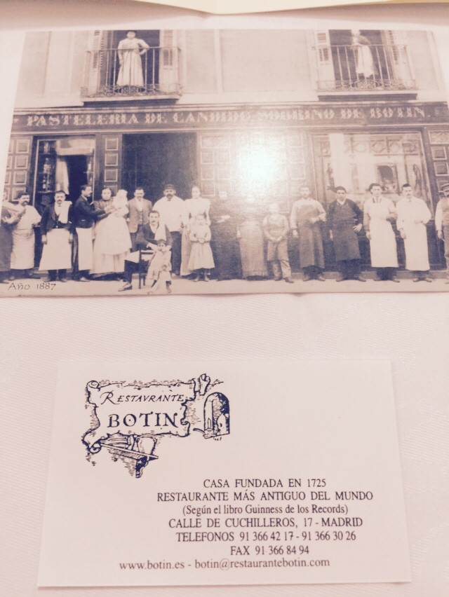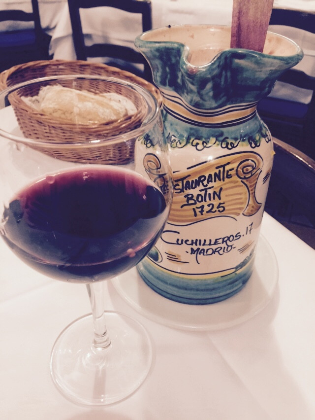 lonely里面推荐BOTIN 1725年的老店,确实很棒,我们两个人点了烤乳猪和烤羊腿,很嫩,点了半壶他们的特色葡萄酒,加了冰块和柠檬。值得一试。当年老店因为宾客满盈,把能拿出来做餐厅的地方全利用了,包括要经过厨房的内间,和地下酒窖,酒窖很有感觉。