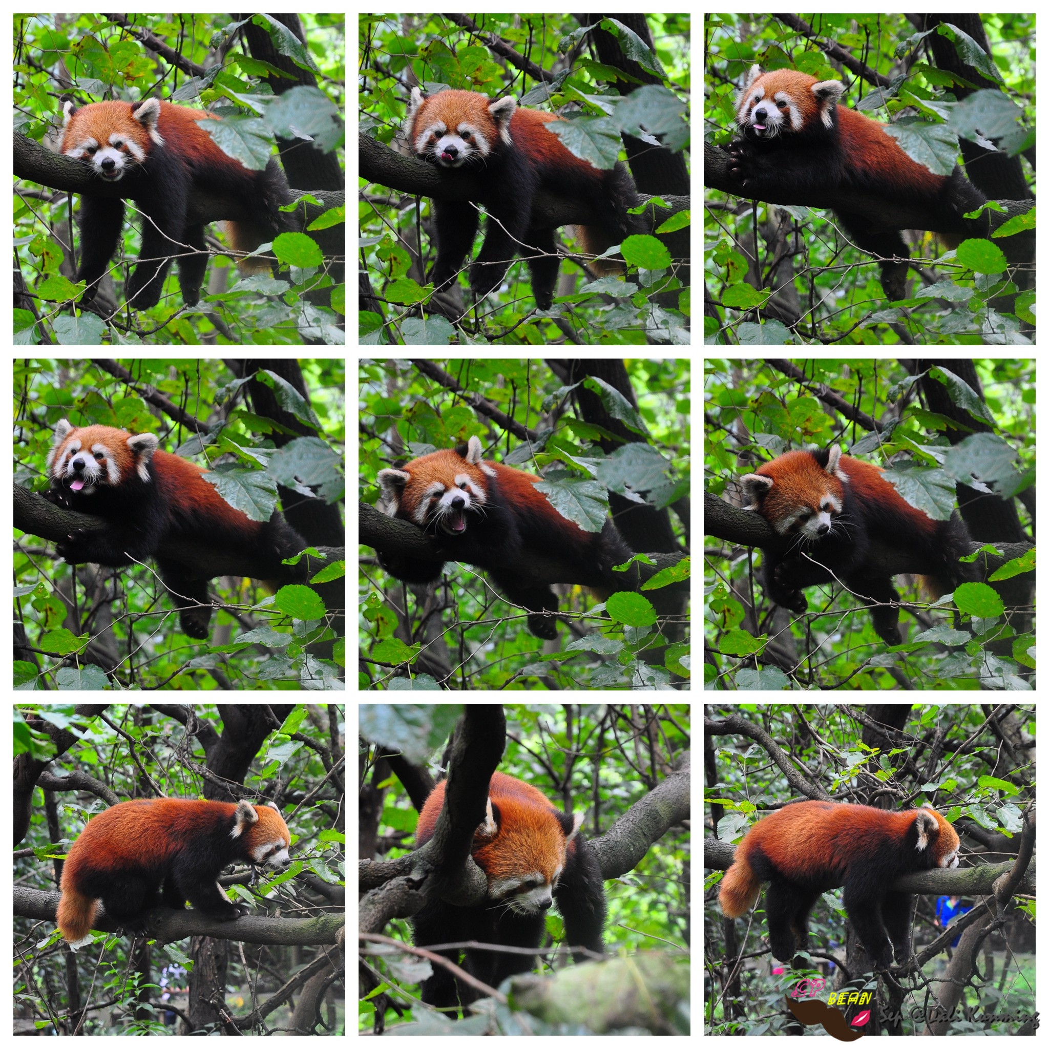 。连小熊猫也不见了,好不容易逮到一只趴在树上睡觉的小家伙,还被欢呼的游人吵醒了走掉了。话说这憨货,技术真是堪比小龙包啊,一根树枝就可以睡呢
