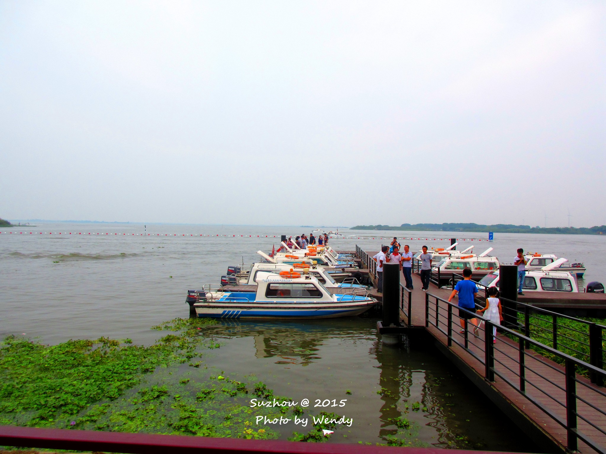 阳澄湖上养殖虾、蟹、鱼的快艇在这湖面上来来来往,面对周围一切的美好,让人不禁想到陶渊明笔下“采菊东篱下,悠然见南山”的世外桃源。