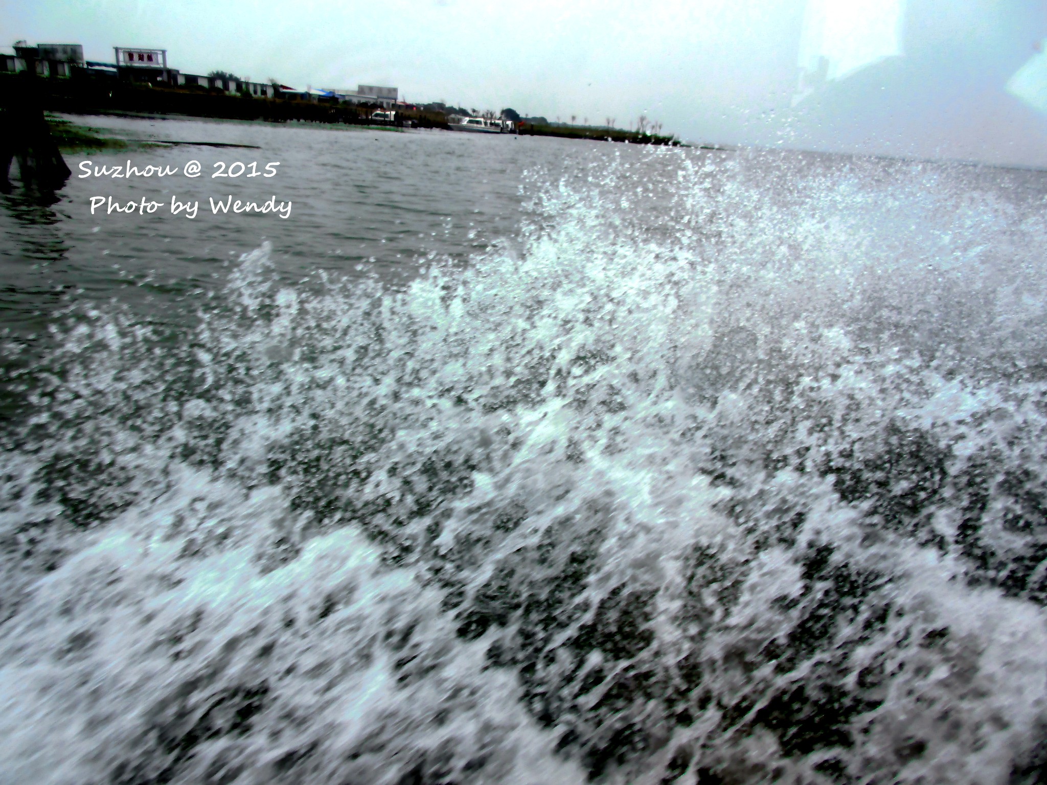 看阳澄湖湖景,波光粼粼的湖面上渔船往来,溅起的浪花,在阳光下时尤其美。