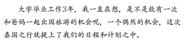 最初确定这次泰国自由行还得从今年的5月底说起。经过5月底的一次和叔叔婶婶的家庭间的聚会,约定了我们两家人要一起前往泰国自由行的计划,这才算是给妈妈吃了一颗自由行的定心丸。