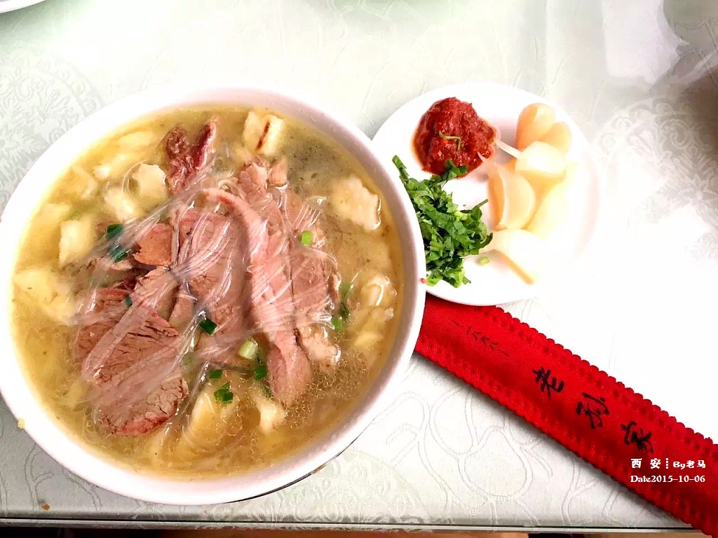 陕西西安,老孙家牛羊肉泡馍。(小妹的照片拿来用,很有感觉,尽管馍掰的有点儿大,哈哈。)