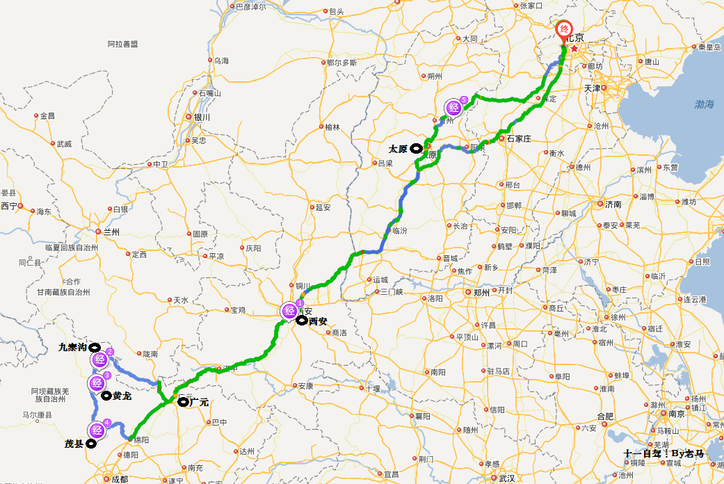 第五天,茂县-西安,广元市吃午饭,宿西安,约800公里。