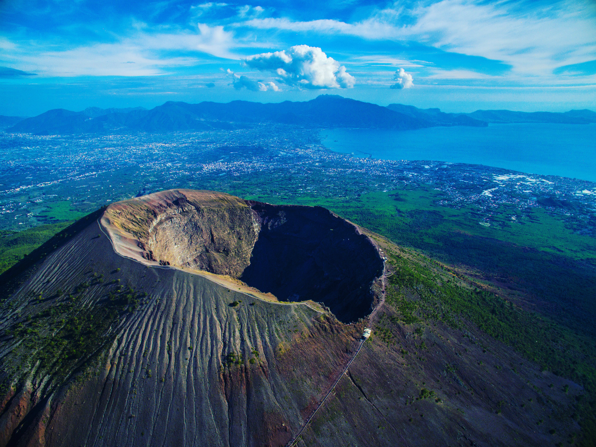 维苏威火山位于意大利那不勒斯湾之滨,海拔1,281米(4,200英尺),是欧洲大陆唯一的活火山。它的火山口周边长1400米,深216米,基底直径3千米.维苏威火山的形成是非洲板块和欧亚板块相互碰撞的结果。维苏威火山在历史上喷发过很多次。最近的一次喷发发生在1944年,是欧洲大陆唯一的一座在近一百年内喷发过的火山。