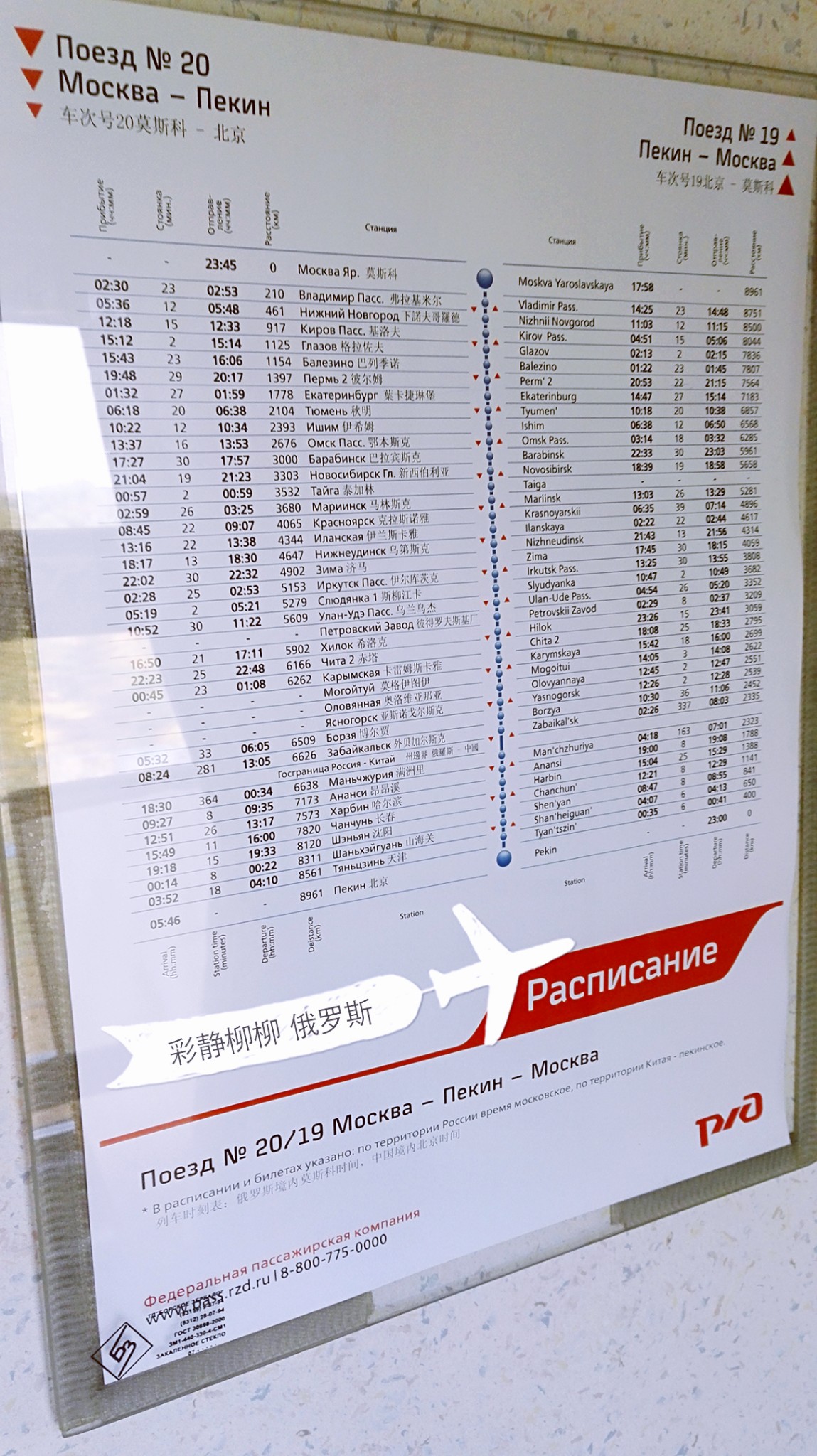 门上有个中英俄三语的K19和K20详细时刻表,是个非常好的到站时间参考。