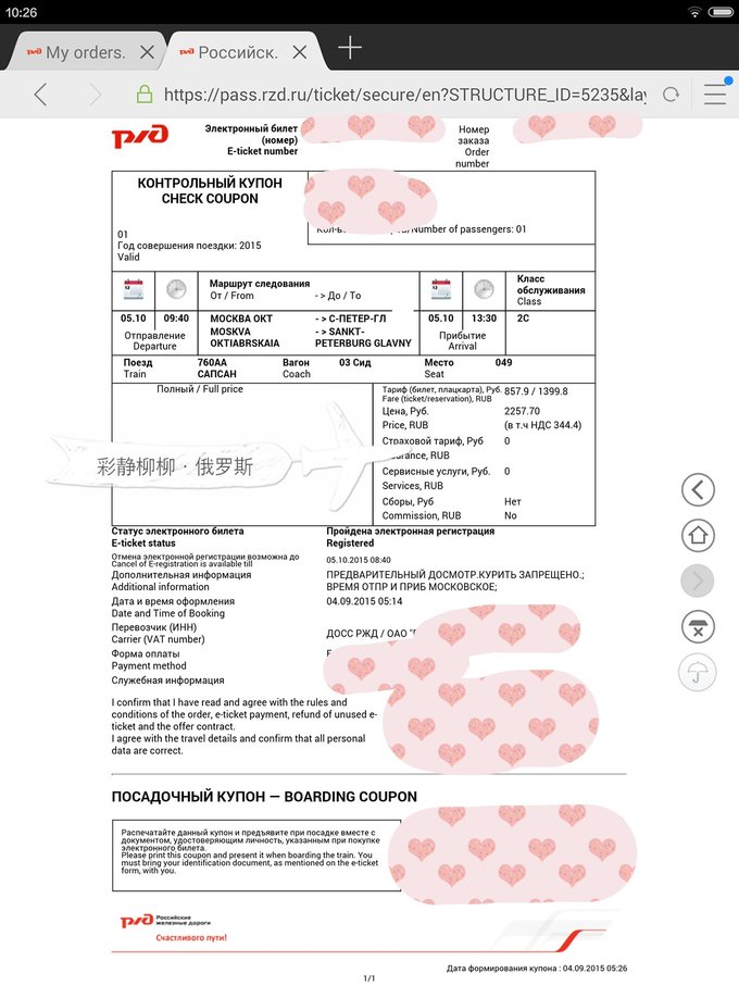 在此一并说下,莫斯科到圣彼得堡的高铁票也是在俄铁官网提前购买好的。也有不少人说到现场买票随时都能买到,没必要提前在官网买好了呀!随时能买到是不错,但是当时买的价格,跟俄铁官网提前购买的价格,差很大!提前越早价格越低。按理说,官网最早提前60天放票,但是这次很不巧的遇上10月起的时刻表大调整,所要买的日期一直到了提前不到30天才放票,价格自然是贵了一点,但也是能接受的范围。