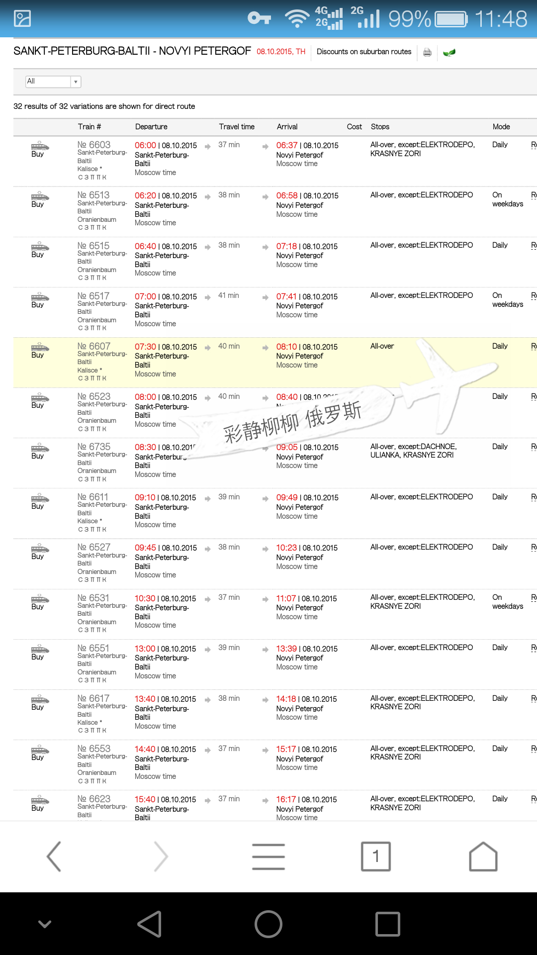 也可以搭乘地铁红线到波罗的海火车站乘坐城际列车至Старый Петергоф站。但是出站后建议步行前往夏宫,因为沿途风景很美,有漂亮的公园和教堂。坐城际列车的注意一下提前在俄铁官网查询列车时刻表,因为中午有两个小时没有车,原本我就是要去坐火车的,幸好在坐地铁的时候顺手查了下列车时刻表,不巧正赶上了那两个小时的无车点,立马改变计划,坐到了Автово站换了公交车去。