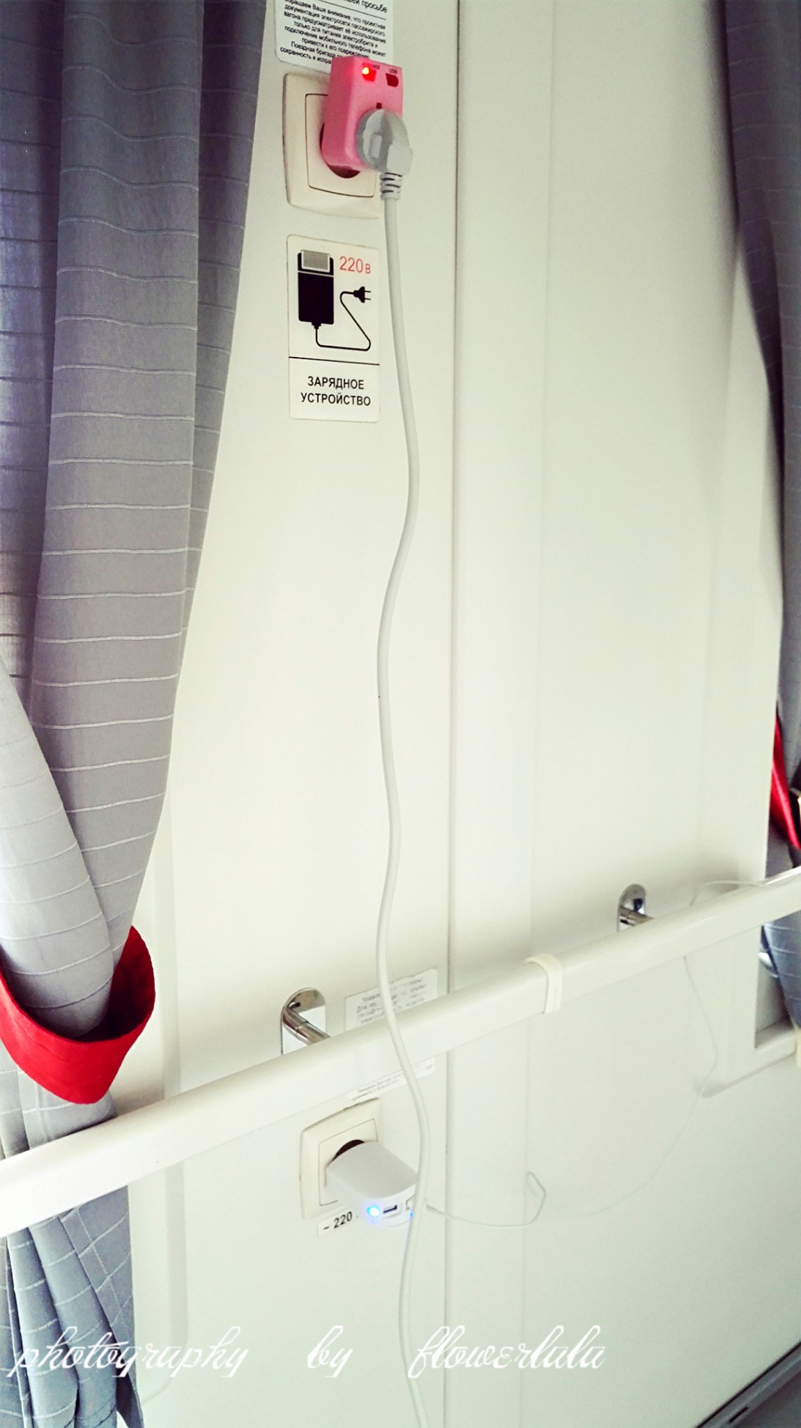 车厢里电源插口不在包间内,而是在过道里,有两组,每组上下各一个,另外,洗手间里面有一个,垃圾桶上面有一个,也就是一节车厢有6个插口,我们这节高包没有满载,所以没有抢电源的事发生,大家都够用。我带了一个拖线板,包间的门缝是可以让线通过的,所以不影响锁门,在包间内充电。没有拖线板的只能把手机兜在窗帘上充电,或者人站在过道里拿着充了。插口是2个圆孔的,要带转换器。