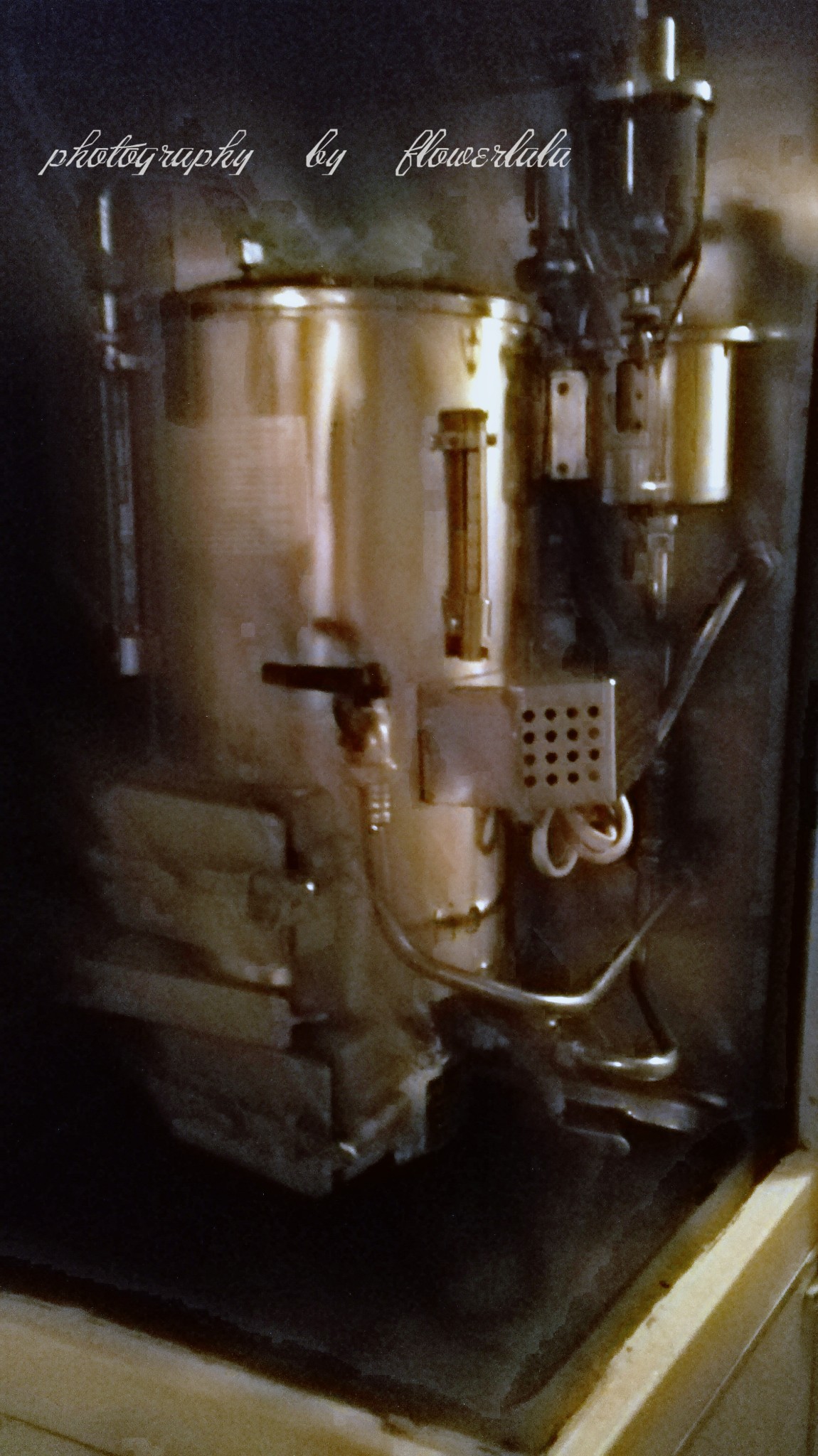 这列车的茶水炉看上去构造小复杂,总觉得有带滤水装置,因为喝水的时候有软水的感觉,昏暗的灯光下茶水炉很带感啊!白天又忘了拍清晰的说!就这一张了~~