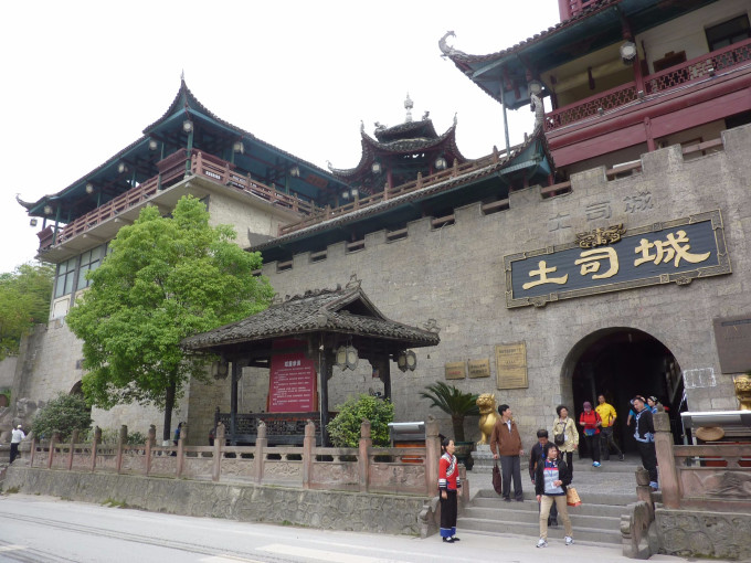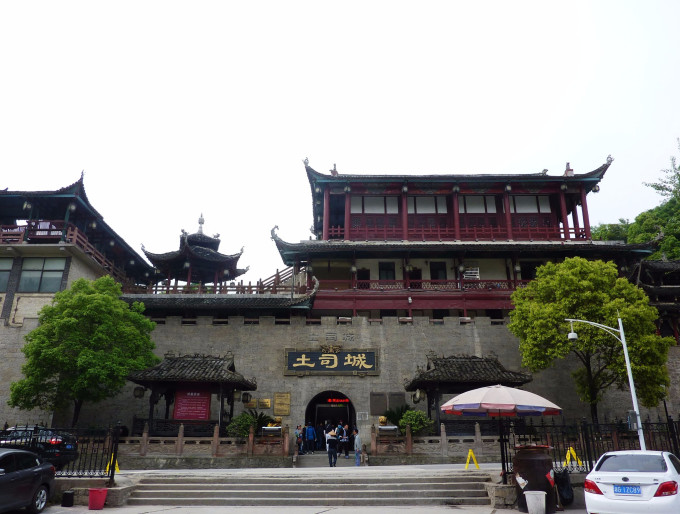 其它土司王都为自己修建一座土司城,唯有彭氏分别在永定、永顺修建了两座土司城。在永定的土司城内,彭氏为显示其地位,修建了湘西最高的一座吊脚楼,现在参观的土司城就是彭氏的永定土司城。