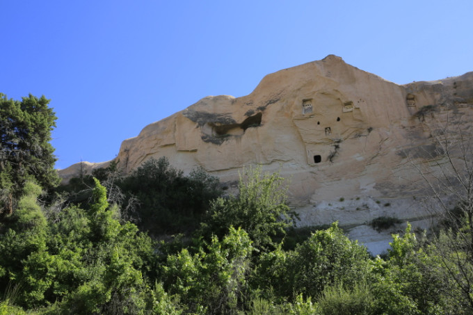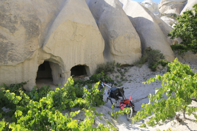 路两边的山谷里有几片葡萄林,再往里开始有石窟了