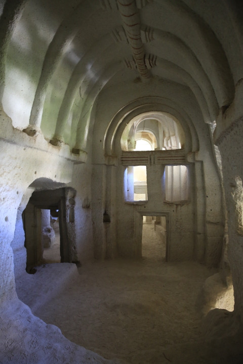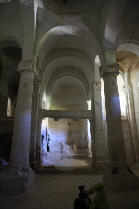 山谷尽头处有一个教堂遗址,门面很小毫不起眼,过个小桥进去后别有洞天,基本淘空了整座“山”,没机械的当年真是浩大的工程,只能说是信仰的力量(内部照片提亮)。