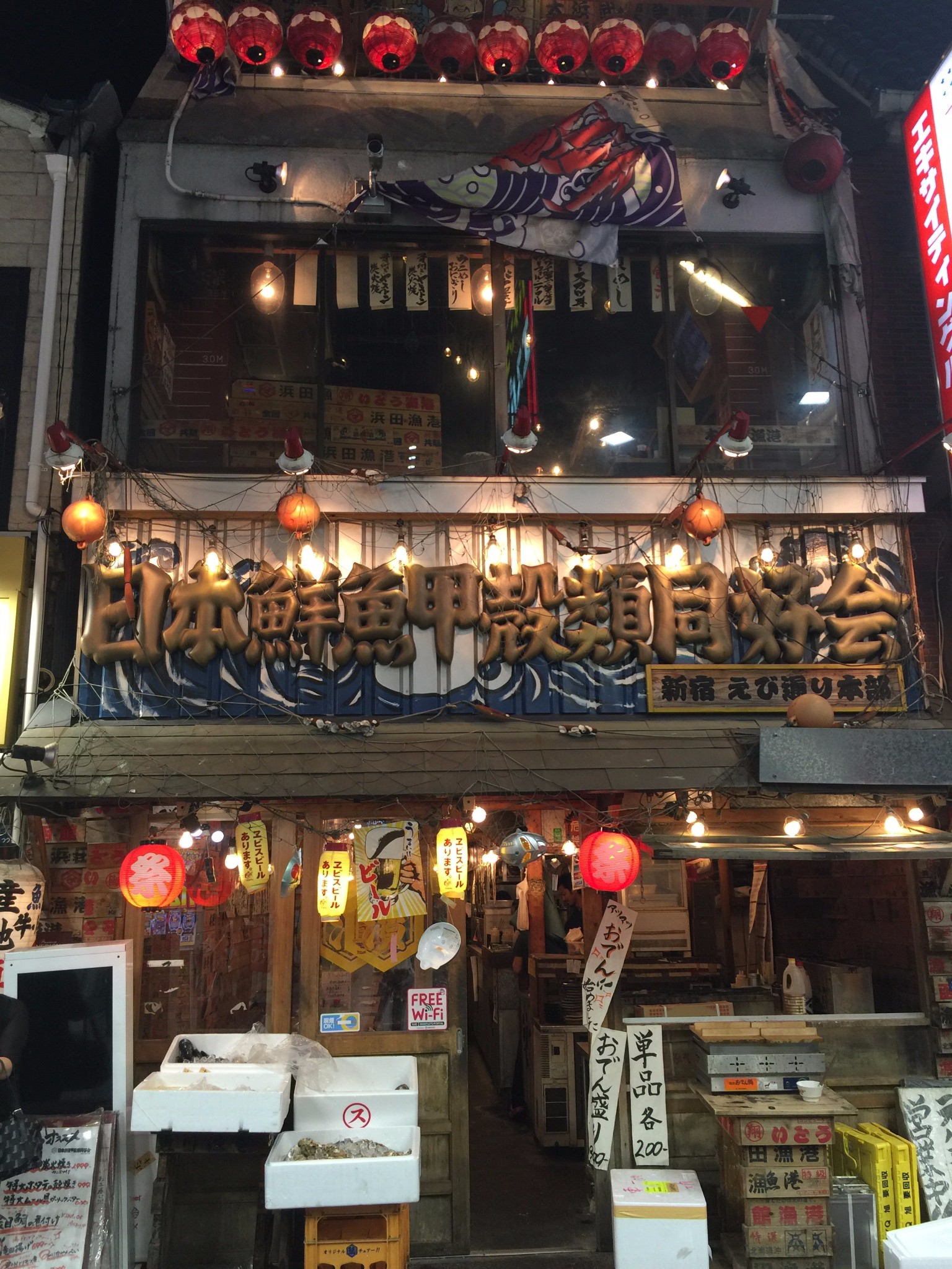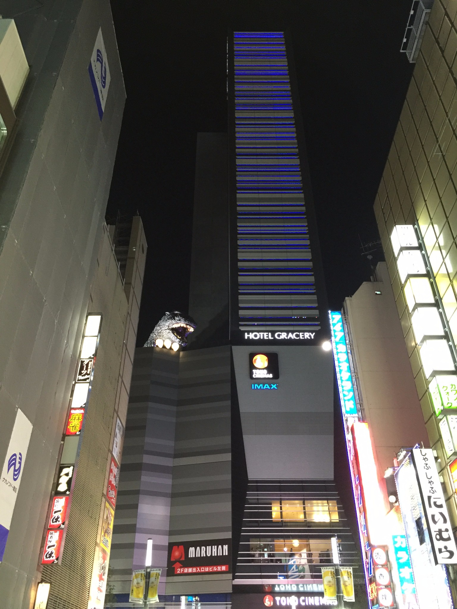 到达新宿站,开启了漫长的找宾馆之旅,建议大家放心大胆的询问路人,英语也没有传说中的那么糟糕,走了很长的一段路找到宾馆的时候,真心已经累的不行了。但是在找宾馆的路上找到了想吃的晚饭~酒店前台在八楼,有一只很大的哥斯拉。从外观上还是很好认的。酒店一楼有很多吃的,隔壁就是大国药妆店,有很多中国留学生在路边。酒店大堂有行李称重机,所以不用担心超重(达美是每人两个托运不大于23公斤还可以有一个随行包。)酒店房间很小,但是卫生间干湿分离很好。放好行李就去吃晚饭。去了一家之前看到蜂友推荐的。