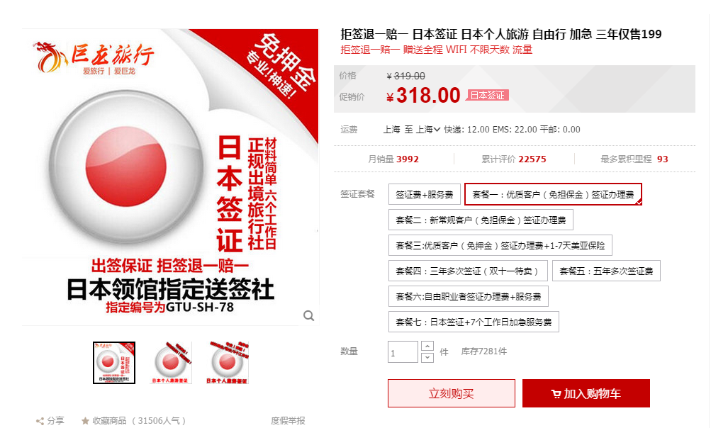 一直知道日本签证很难办,所以只能求助于万能的大淘宝。最后是在巨龙旅行办的。出签很快,也不用提供很复杂的资料。