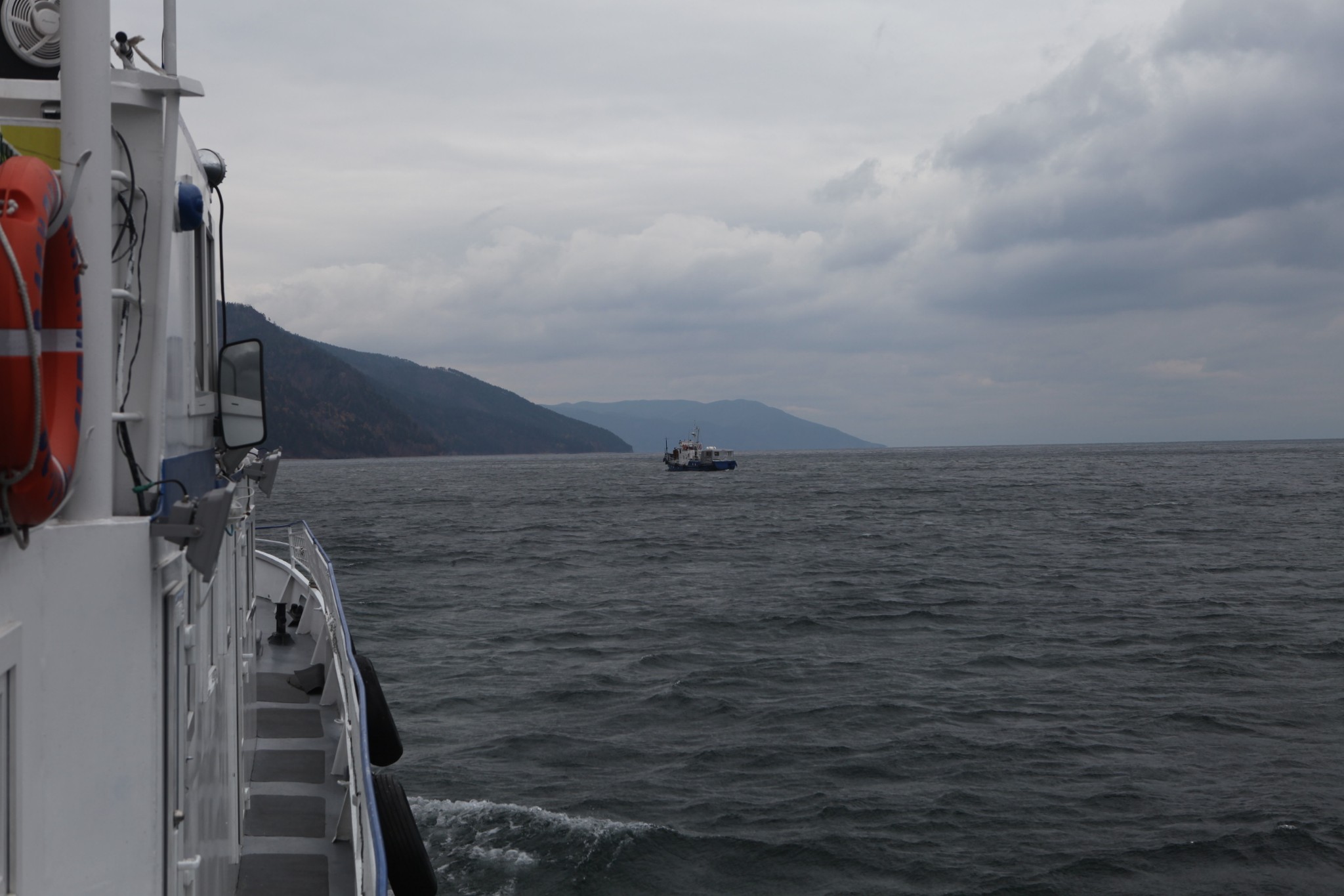 10月中旬的贝加尔湖已经十分寒冷,湖面上寒风凛冽,即使穿着羽绒服依然难于御寒。船驶出不远,扩音器里竟然传出熟悉亲切的港台歌曲,虽然我们认为并不应景,如果能播放李健的一曲贝加尔湖畔那将是多么令人陶醉,不过在异国他乡,却已感很欣然了,对船长的用心报以微笑。看样子中国来这里旅游的人真不少啊!