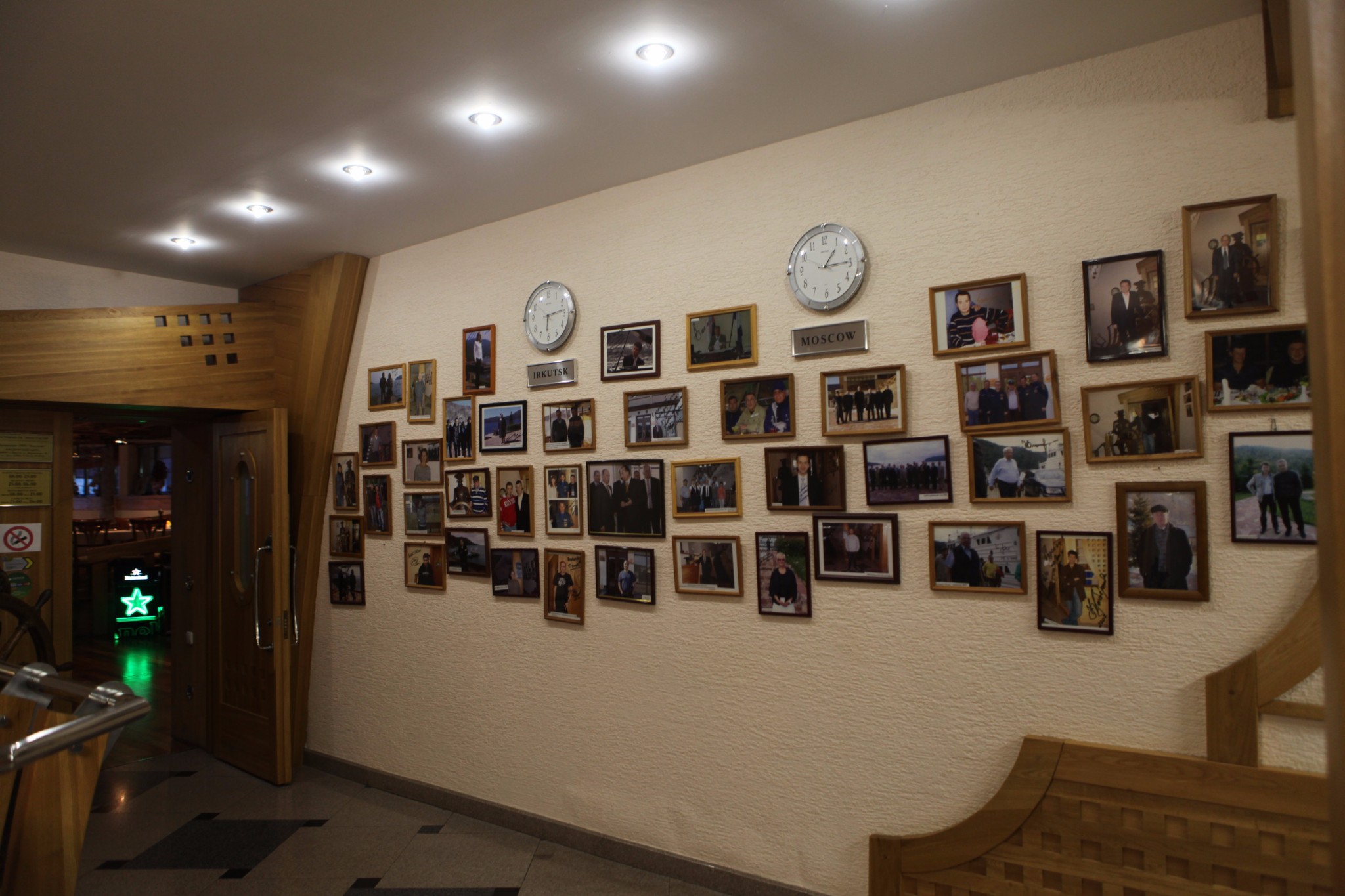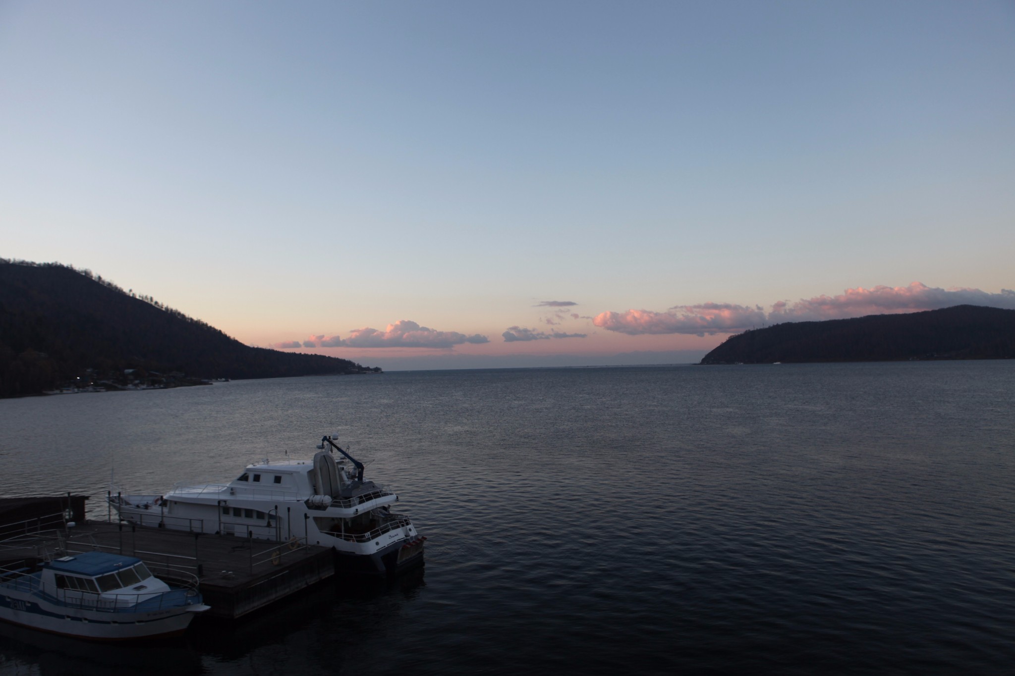 下船后很快就发现一辆出租车停在附近揽活,司机是一位蒙古人的样子,经讨价还价,200卢布搞定,直奔预订的酒店。镇中心沿伊尔库茨克方向,差不多7公里,就到了我们今晚下榻的酒店。酒店坐落在安加拉河口,房间比我们住在伊尔库茨克的酒店宽敞多了,而且还属于河景房,透过窗户望出去,溯河而上,就能遥望贝加尔湖面。酒店还拥有自己的码头,停放着几艘大大小小的游艇。大堂有一面贴满照片的墙,从中可以看出普京、叶利钦等等俄罗斯名人都曾下榻过这家酒店。但酒店绝对静谧而没有一丝事张扬。