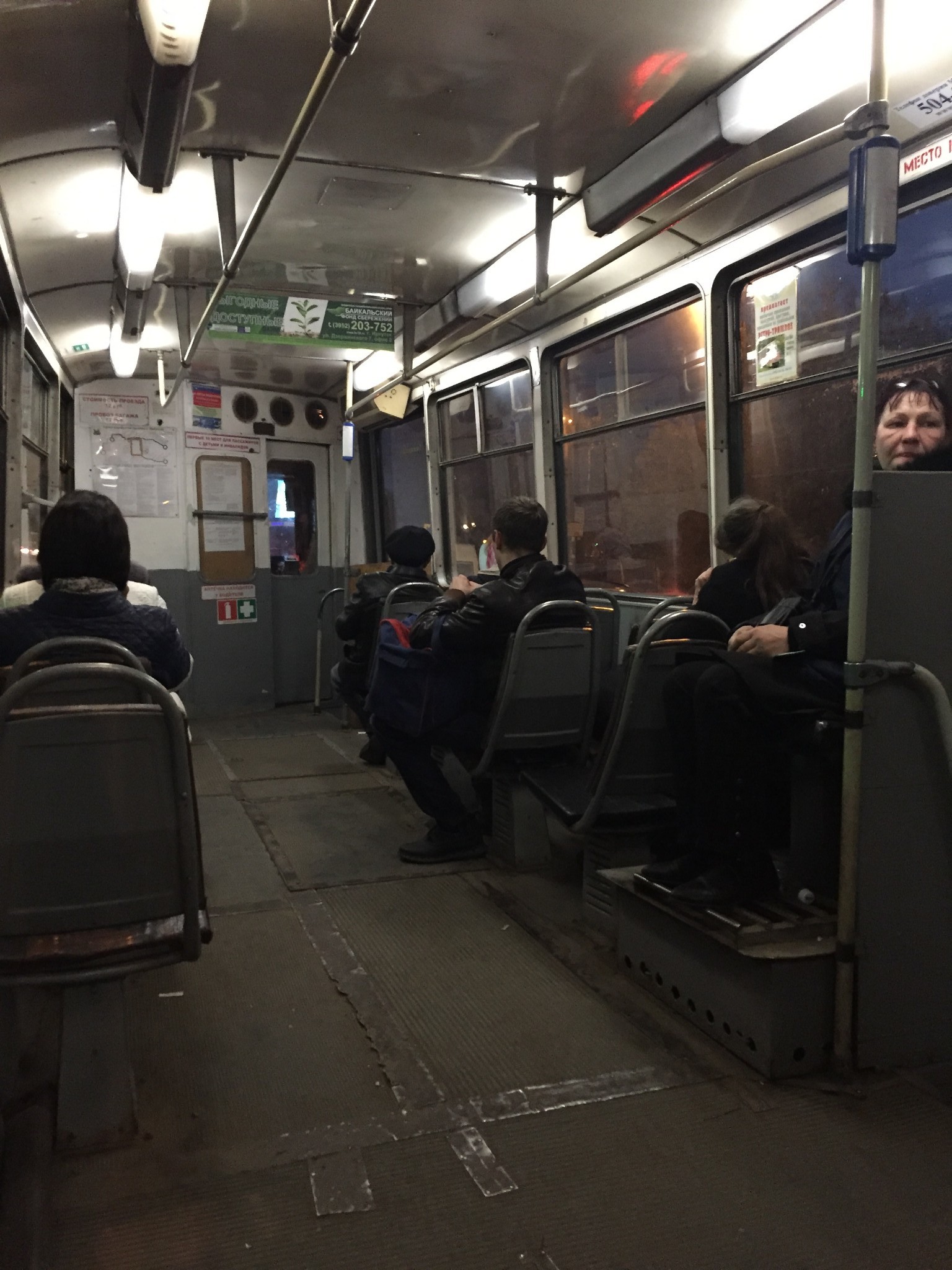 在这里乘坐公交车,上车每人12卢布。有轨电车设有售票员;普通公交车后门上车,前门下车。下车时把钱交给司机即可。
