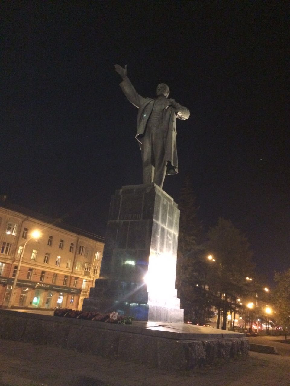 晚上沿着列宁大街走回酒店。一尊列宁站立挥手的雕像在深秋初冬中高高矗立,大街上已经很少有行人往来,灯光昏暗,越发显得清冷。