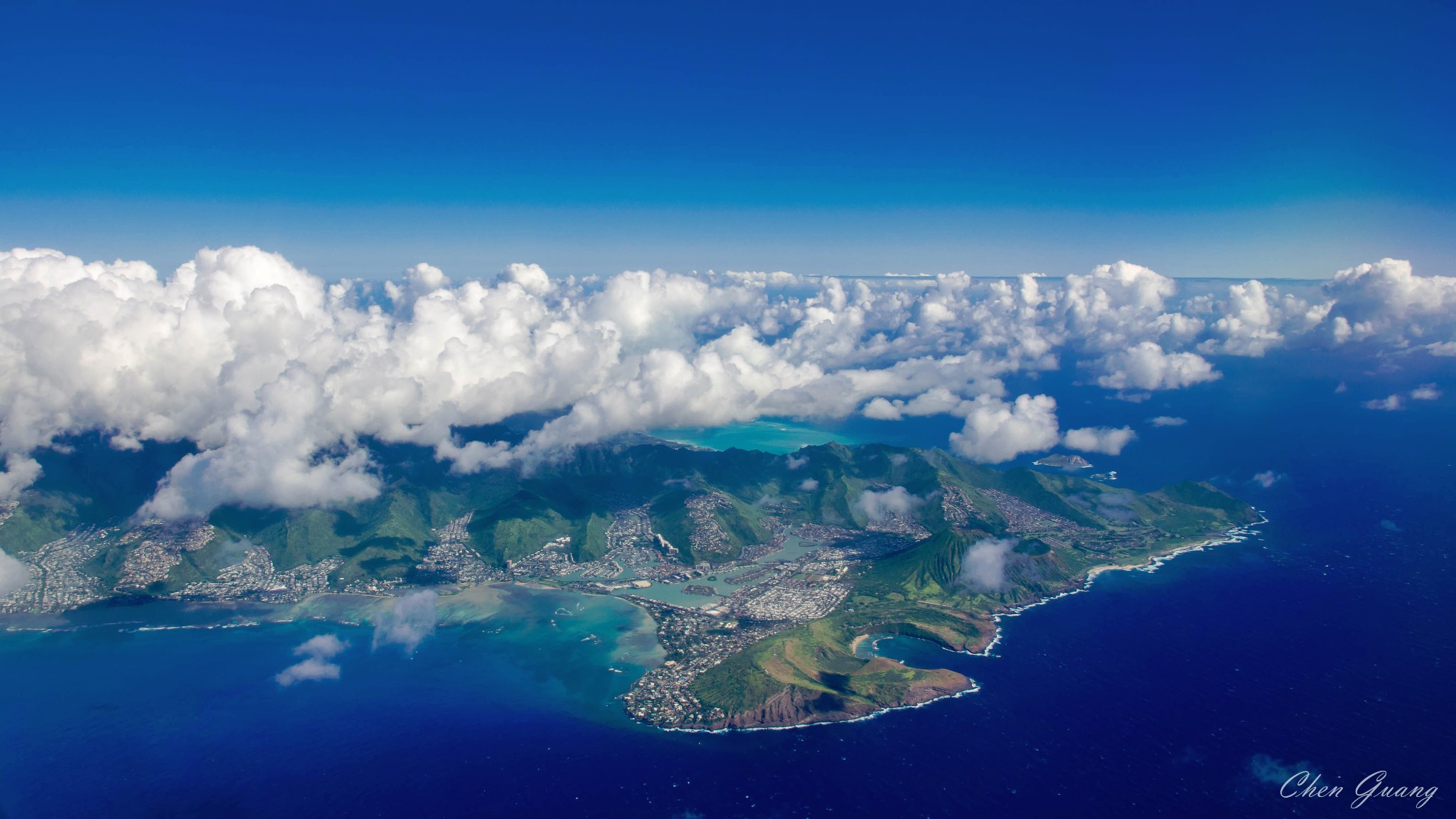 这是我在从檀香山往大岛飞的飞机上拍的檀香山岛的全景,据说檀香山是夏威夷开发最好的一个岛,也最商业化,好吃好玩的也很多,尤其是美味的日式料理!