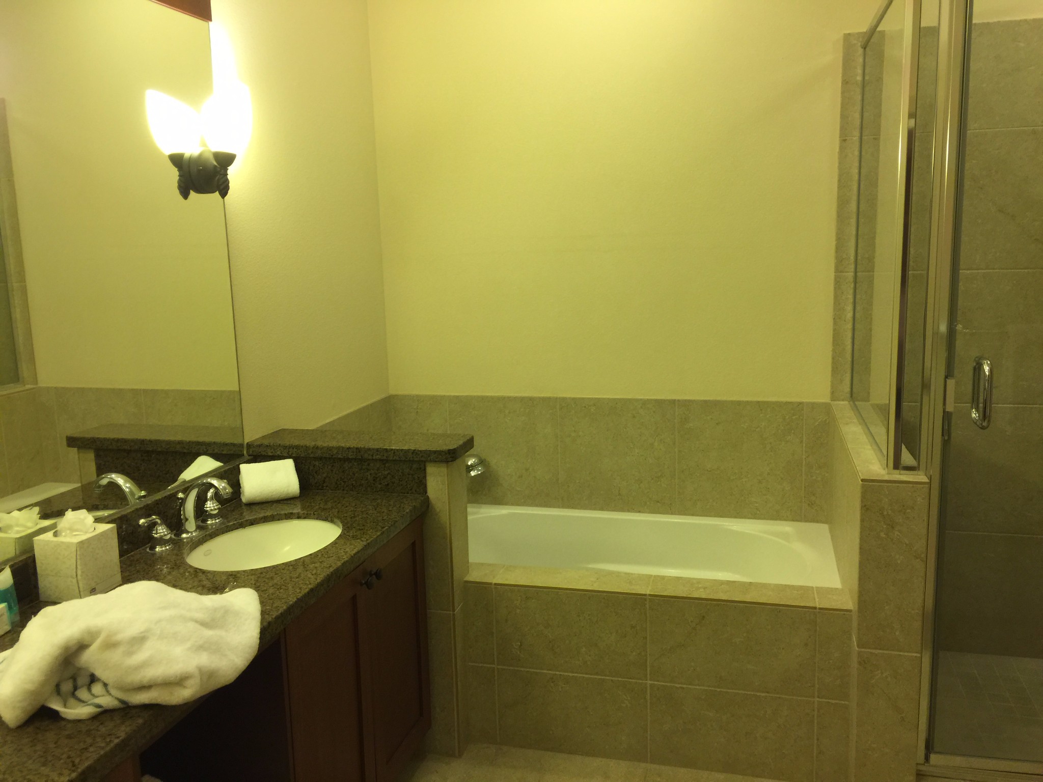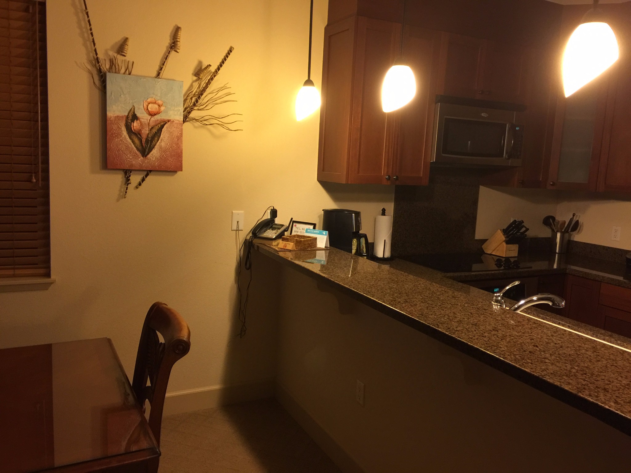 其次是旅馆,我们之前用SPG定的喜来登,不过后来我们去逛Costco的时候发现用Costco会员订的公寓式旅馆虽然贵一些,但看起来住的会很舒服,因为有厨房。于是我们临时改了旅馆,这家叫”Halii Kai at Waikoloa“ 威可诺亚度假别墅酒店。我们开始只是觉得会方便一些,但没想到这个公寓式旅馆会给我们带来非常大的便利,比如我们从Mauna Kea和火山公园回来的时候,都已经快到半夜,没有哪家餐厅还开的。于是我们把提前买好的食材拿出来,LP下厨做了晚饭,让我们不至于饿着肚子睡觉,也不至于会影响第二天的行程。以下我贴几张这个hotel的图,收拾的很干净,很舒服。