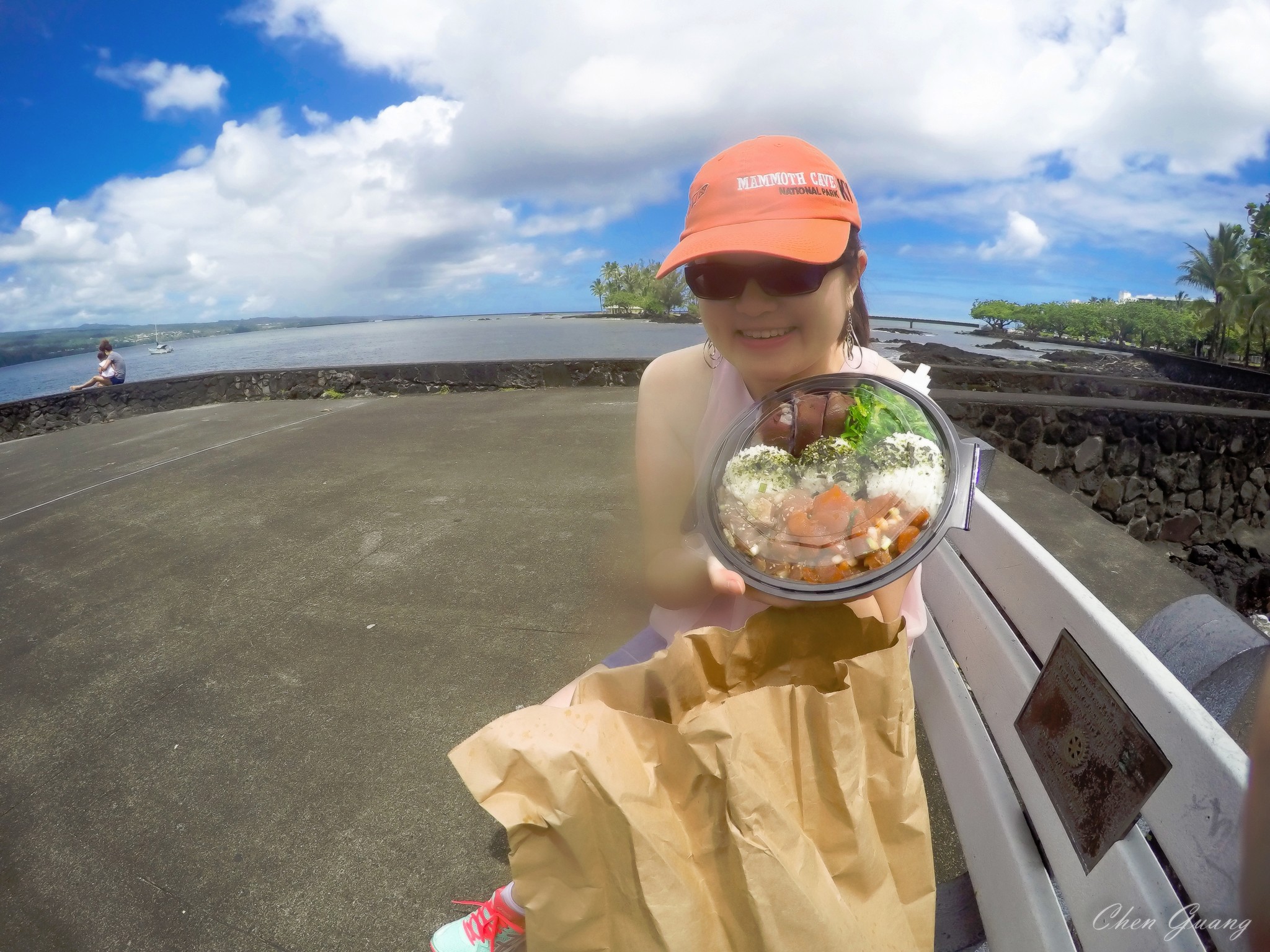 这家日式植物园离hilo bay很近,坐在海湾边上,海风吹过,吃新鲜的海鲜,真的是一件很享受的事情。。。不过。。。后来Hilo又开始下雨了,这里天气真的很诡异。。。