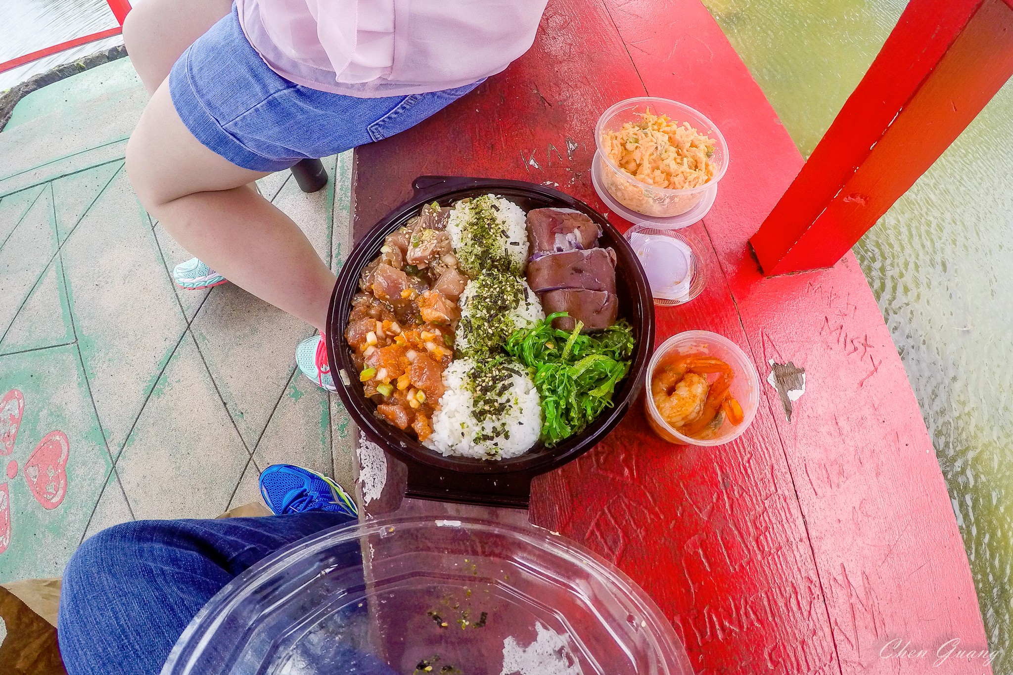 这个植物园离机场比较近,LP攻略第一步就是去那里野餐,因为旁边就有一家yelp评价很高的夏威夷local餐厅,可以买新鲜的海鲜然后去公园吃午饭。