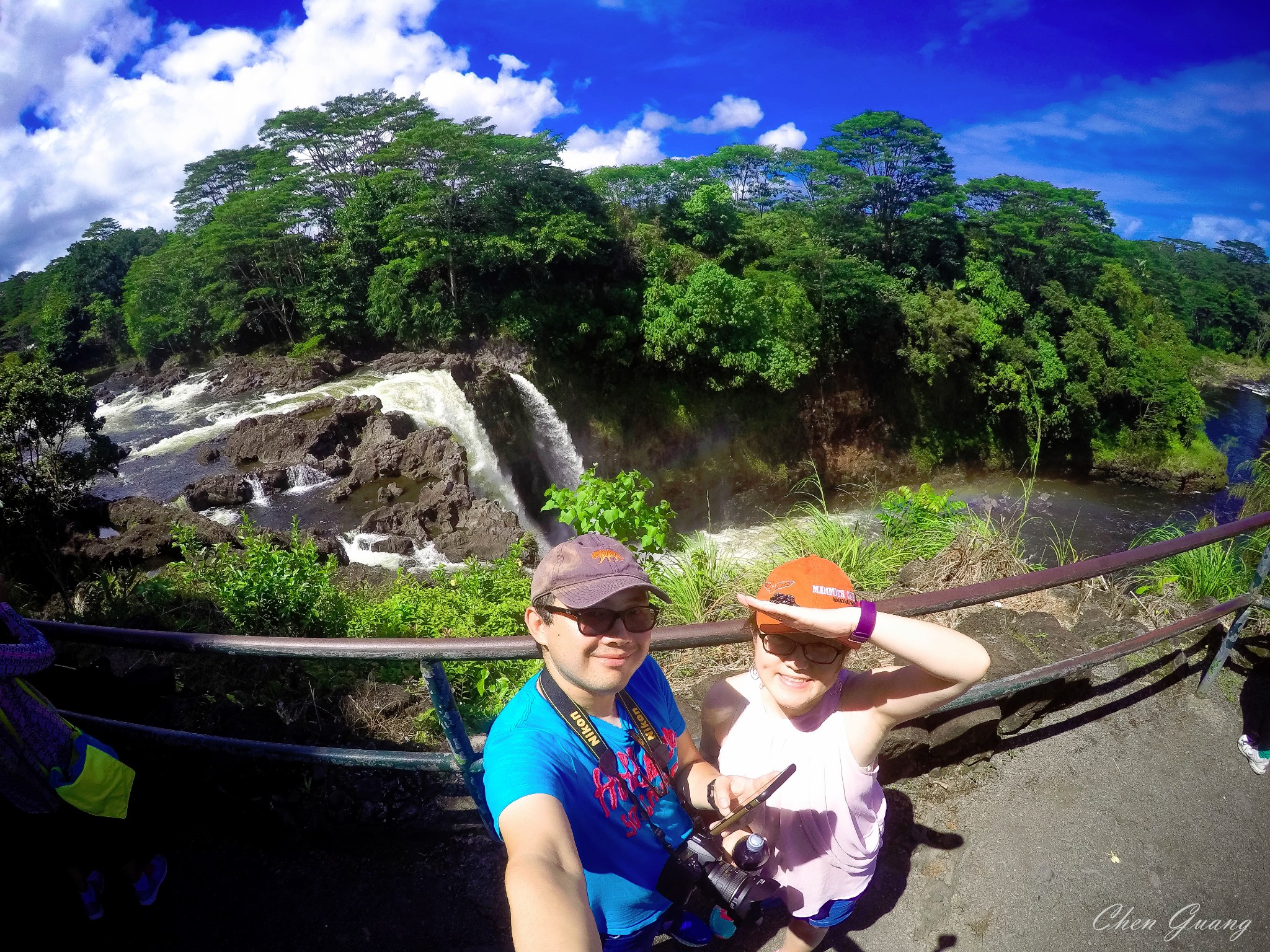 彩虹瀑布是一个很小的景点,距离Hilo城不远,其实。。。就是一个瀑布。。。也不算壮丽。。。看看就好,顺便来张合影。。。我爬上去拍到了两条彩虹。。。