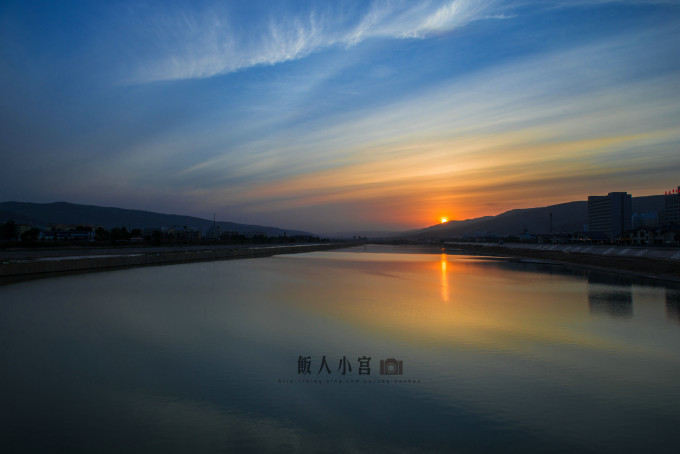 遇上好天气,一定不要错过傍晚,去渭河畔看日落吧。像是事先商量过一样,天边的云彩呈一条条线状,整齐的排列在夕阳周围,随着时间的推移,夕阳愈发红润,将云彩映成一条条彩带,不知从哪飞来的两只大雁迎着夕阳飞去,像是对这美妙的黄昏依依道别。