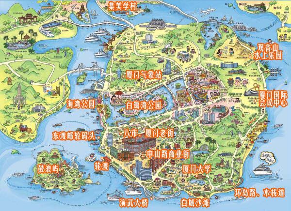 曾厝垵,白城海滩,环岛路,厦门大学一条线很多公交可以坐,下载百度地图。集美学村比较远需要坐2块钱的公交车。鼓浪屿有三个码头可以坐船,买票的时候注意看好。