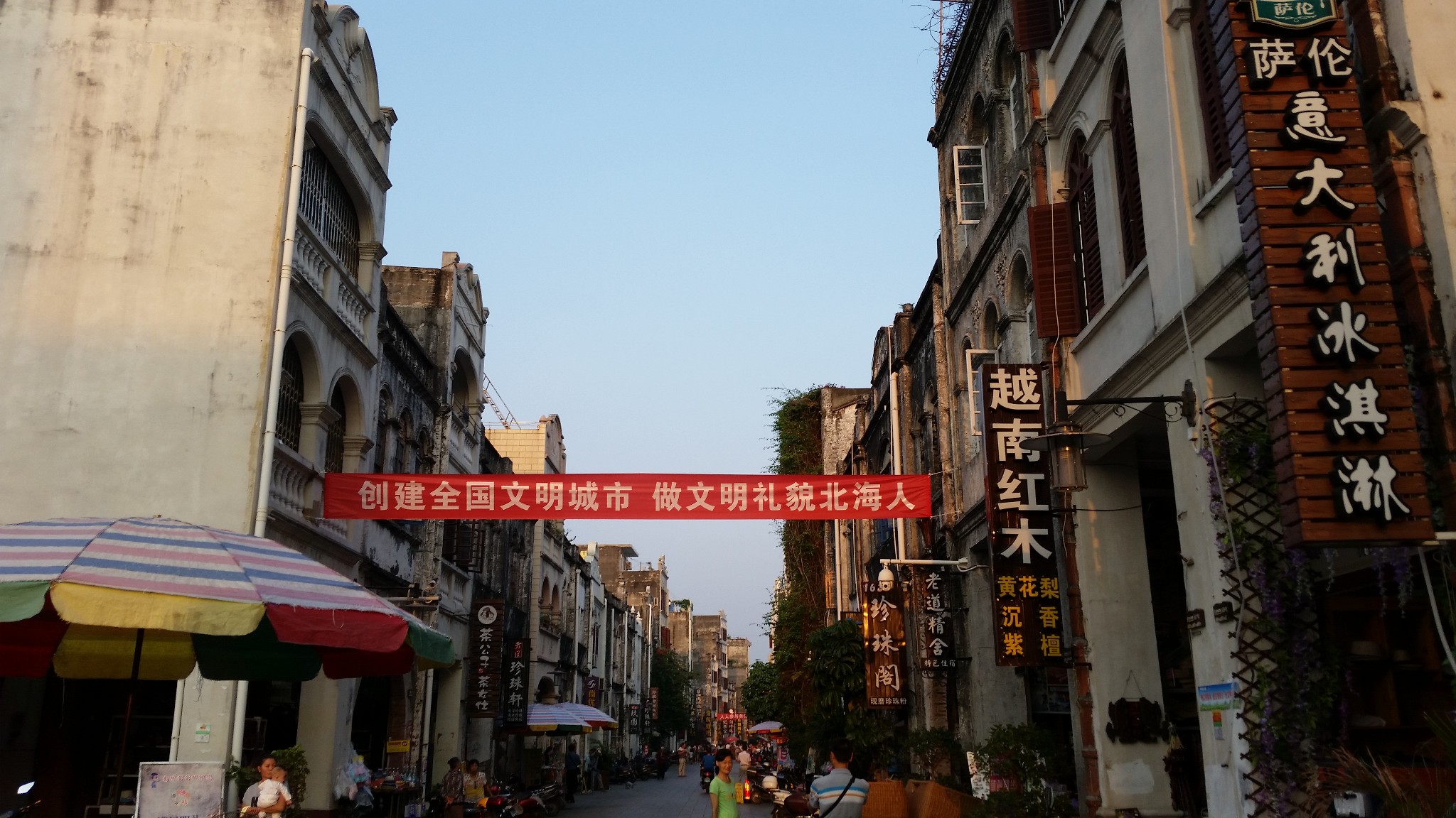 之前说过,我们到达北海站的时候已经是下午1点多了,而后在高铁站买了回程的车票。这样折腾了一下,到达酒店时只想要趴在床上休息了。我们去的时候,北海天气很热,阳光猛烈,完全就是盛夏七八月的气温。我们等到五点才决定动身到老街——中国现保存最好、最长的骑楼街走走!