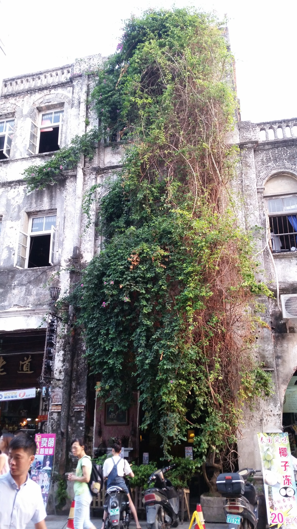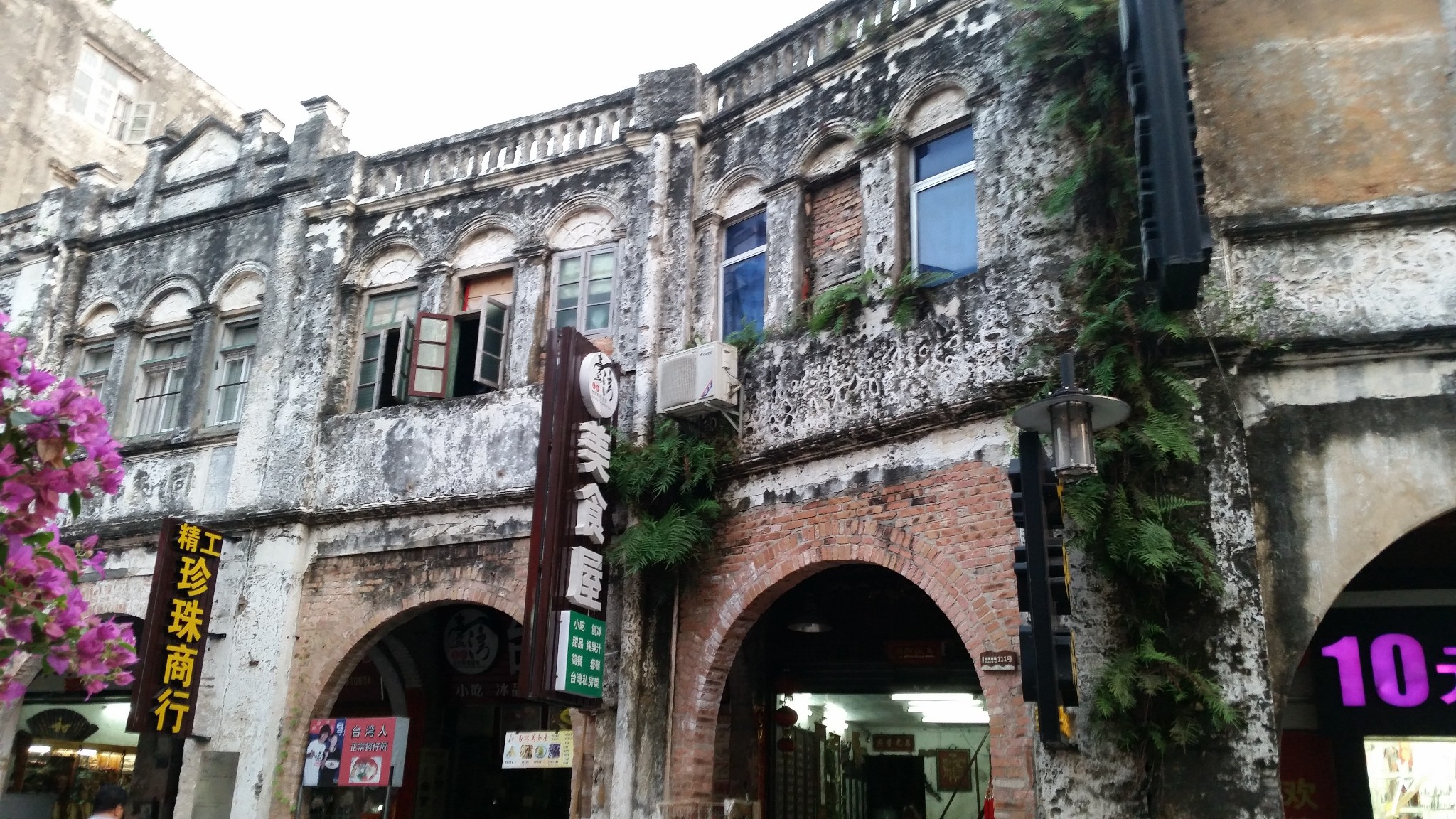 北海老街位于广西珠海路,始建于1883年,长1.44公里。听当地的老人家说,以前还更长,由于城市发展的原因,有一部分已经拆除掉了。一边走一边想,我们广州也有骑楼街,恩宁路,而上下九和北京路都变成了商业步行街,看似政府保护的很好。可是我看到的老街有“老”的味道,而广州只不过是形式罢了。北海的老街景区,也是划分做商业的,但是建筑的本身被原汁原味保留了下来,没有重新粉刷过。逛着这条老街,有穿越回上世纪初的感觉。我觉得这样才好,如果恩宁路可以这样被保护的话,现在就不会这么凋零了……