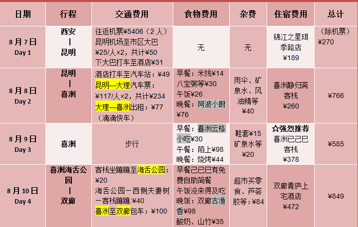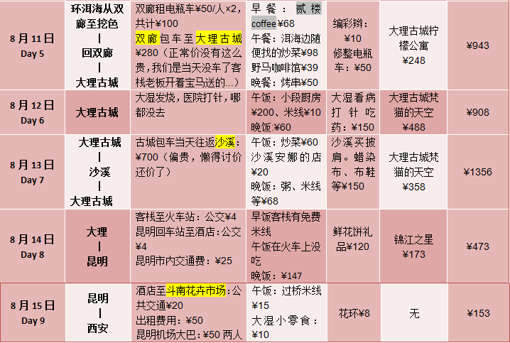 还有一些零碎的没列出来,总计:约¥12000(2人)。