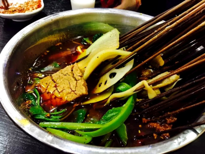 参观完金沙遗址。小伙伴带我去成都的美食一条街,那条街上的每一家店都排着长长的队伍。在那儿我吃到了此次旅行最喜欢的美食——糖油果子。和其他地方卖的不同的是,它中间是空心的,外皮非常脆,一个口一个简直停不下来!妹子说这个就是她小时候的味道,然而现在很多成都的老小吃都不见了。以前她小的时候大街小巷都是各种非常好吃的小吃,而如今都已经看不见了。这是件非常忧伤的事情。晚上我们去吃了在冷锅串串的美食排行版上第一的冒椒火辣。这家人气真的超级旺,五点去都要排近一个小时才能吃上。