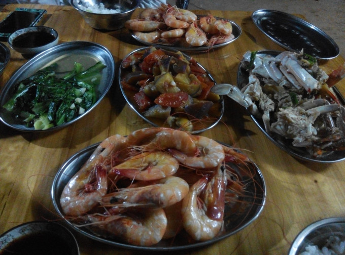 晚餐自己去街市买海鲜和菜回来加工